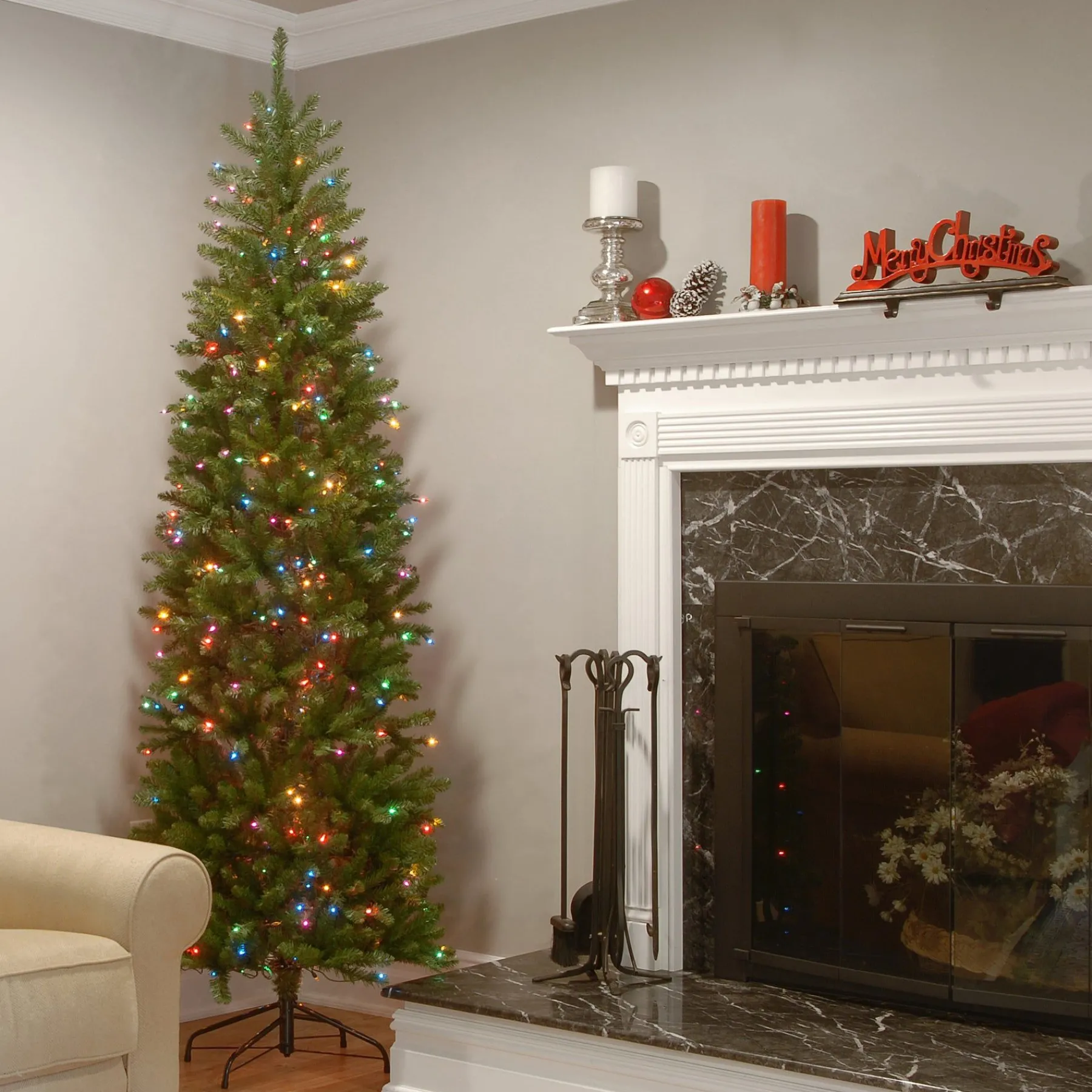 Slim-National Tree Company 7 Ft. Pre-Lit Conger Pine Pencil Slim Tree With Led Lights