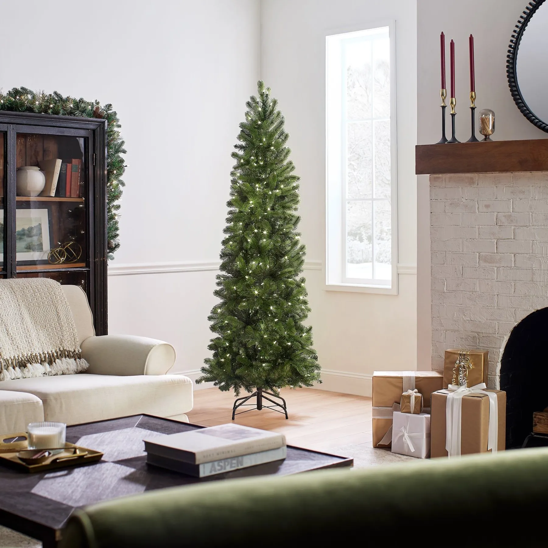 This Downswept Douglas Pencil Slim Tree Features Feel RealĀ® Branch Tip Technology, Creating A Tree With Remarkable Realism. These Crush-Resistant Branch Tips Are Molded From Real Tree Branches For An Authentic Living Tree Appearance. This Tree Is Pre-Strung With 300 Dual Color Lights That Change From Warm White To Multicolor With The Touch Of A Button. The Bulbs Are Low Voltage Leds That Are Energy-Efficient And Long Lasting. Included Is A Foot Pedal Switch To Control 10 Different Light Colors And Actions. This Slim Profile Allows For Display In Corners Or Limited Space Areas. Hinged Branch Construction Makes Assembly Quick And Easy.