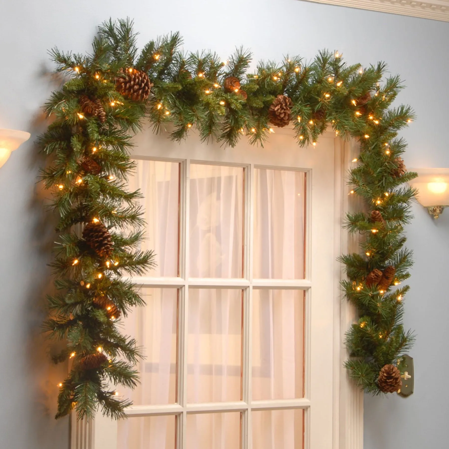 - Designed With An Evergreen Branch Base, This Pre-Lit Artificial Christmas Garland Is 9 Feet Long And Decorated With Pine Cones.