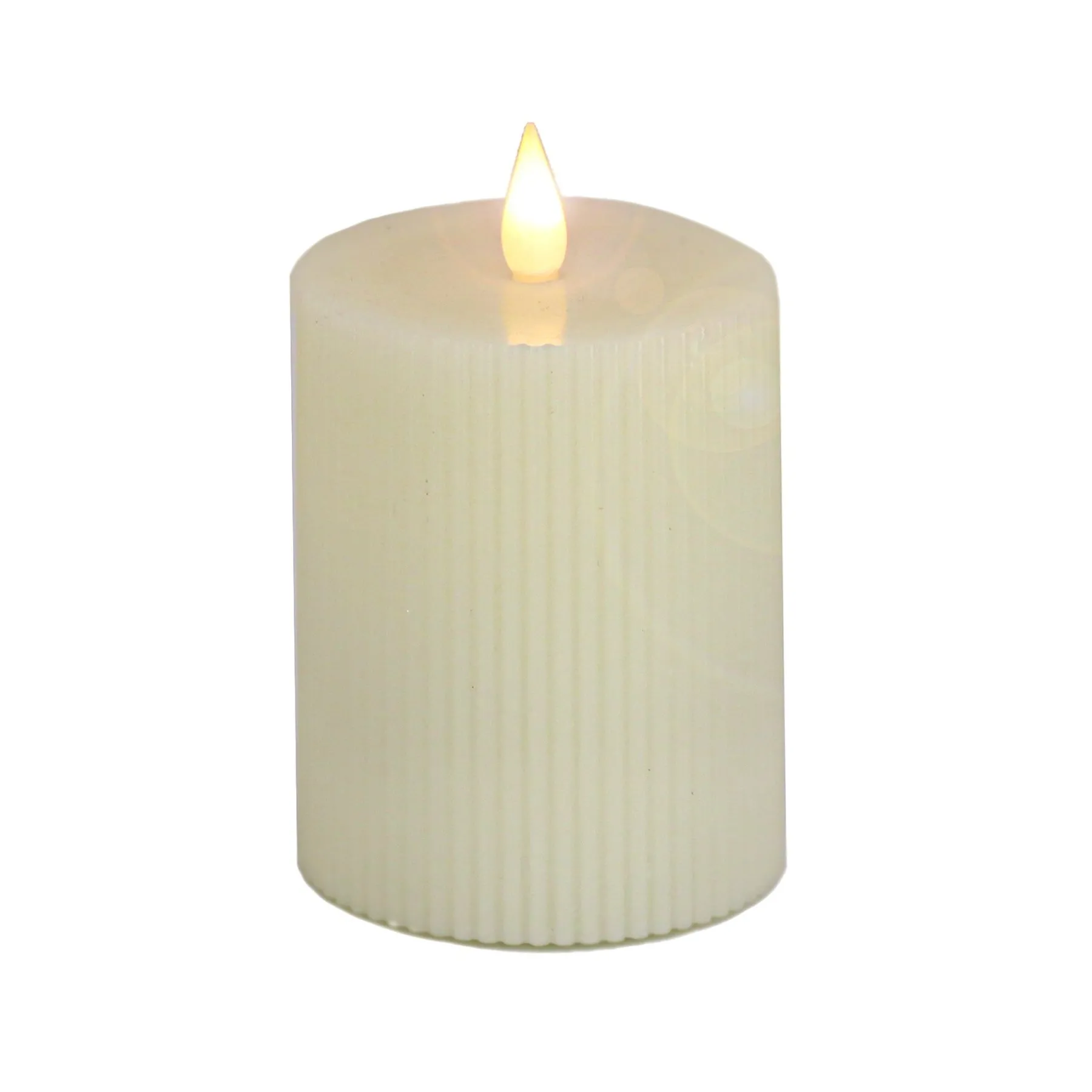 Battery Operated With Remote Controlled Functions, This Flameless Candle Produces A Realistic, Soft, And Safe Candle Glow. The Exterior Surface Is Crafted With Real Wax And Features An Elegant Vertical Ridged Design In An Attractive Ivory Finish. A Handheld Remote Control Operates The Lifelike Candle Flame With Functions That Include Brightness, Flicker Speed, And Timer Settings. Uses Two C Size Batteries (Not Included).