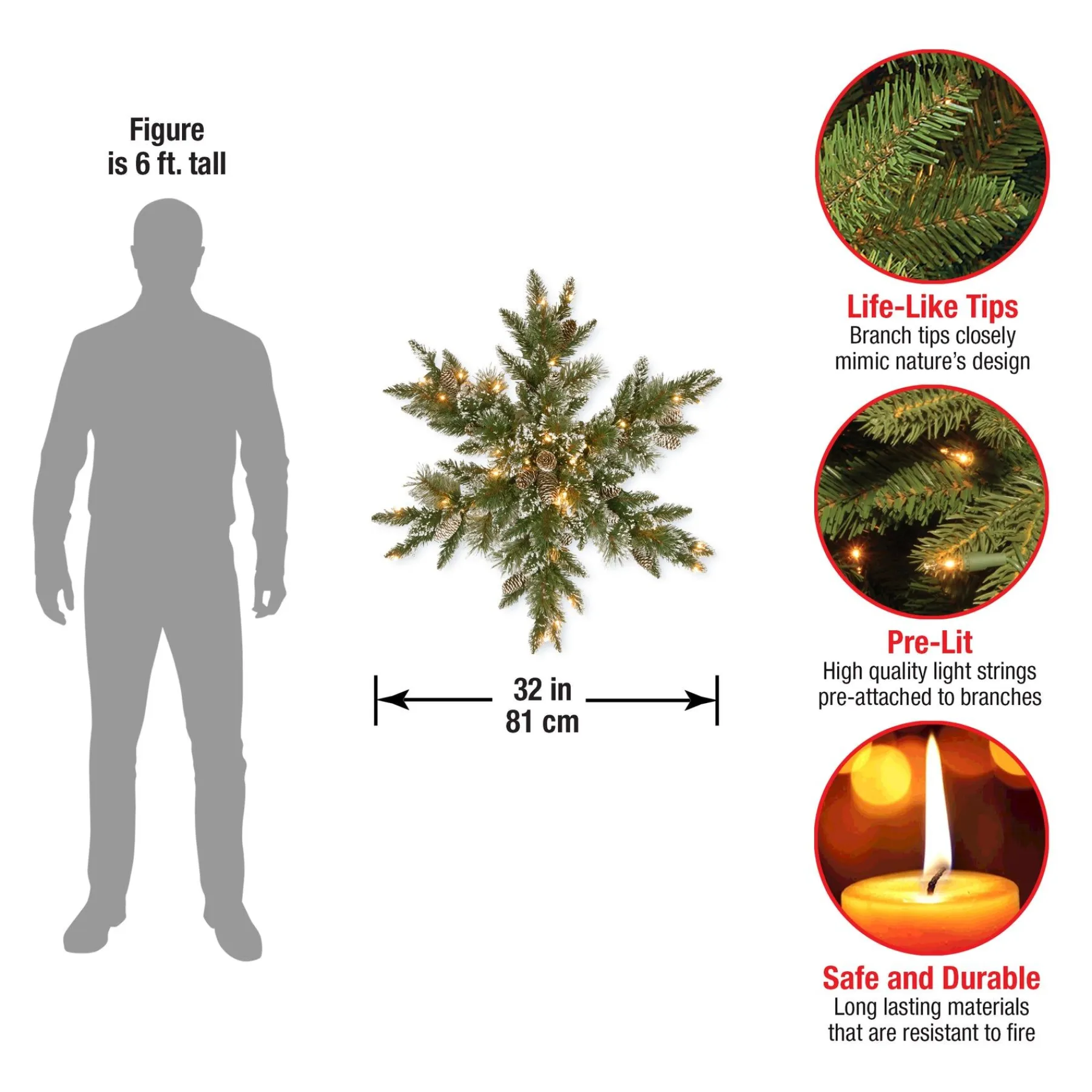 Christmas Greenery-National Tree Company Pre-Lit Artificial Christmas Star Wreath, Green, Glittery Bristle Pine, White Lights, Decorated With Pine Cones, Frosted Branches, Christmas Collection, 32 Inches