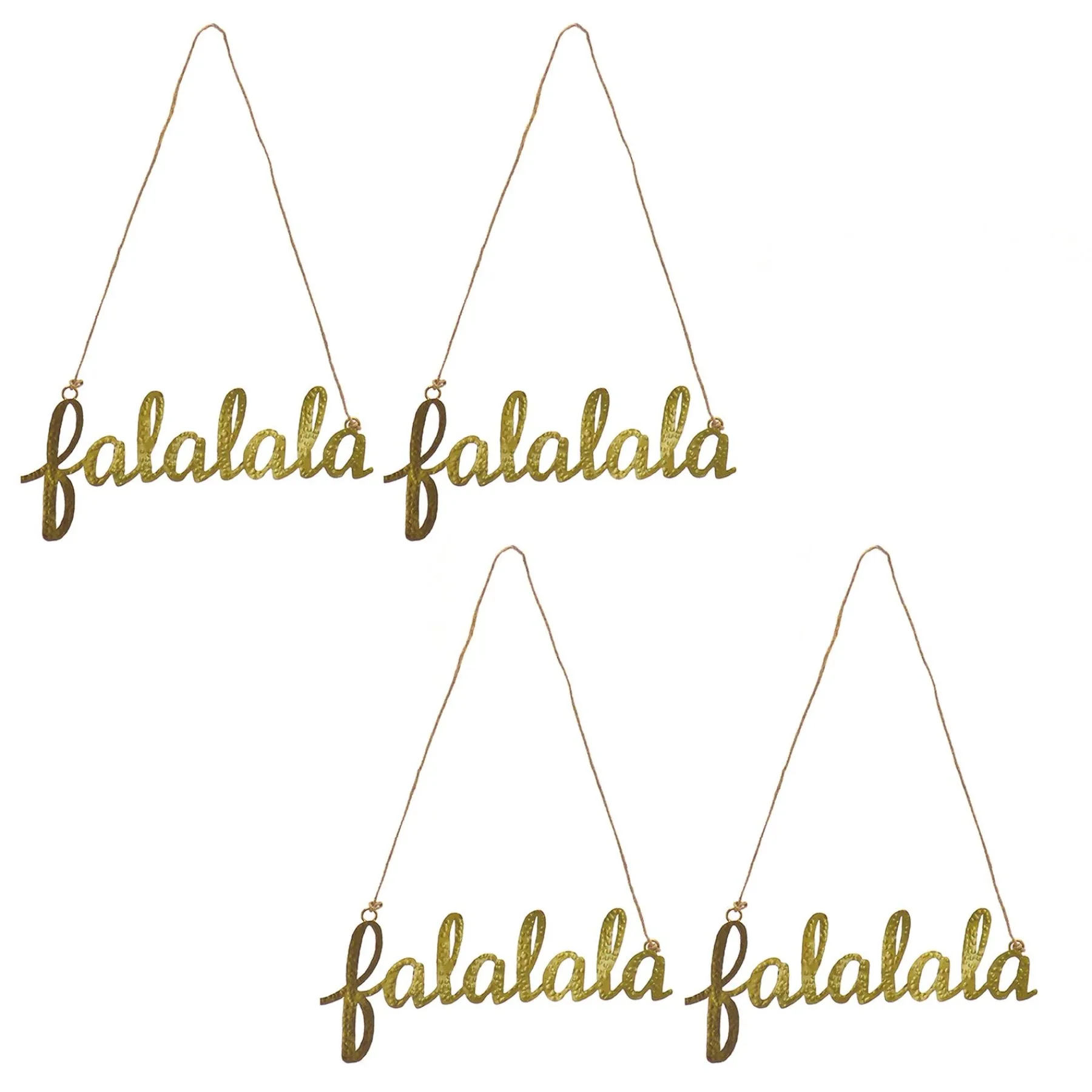 Add A Twist To Traditional Christmas Trimmings With This Set Of Unique Hanging Ornaments. Constructed Of Thin Metal In A Mottled Gold Finish, The Song Refrain “Falalala” Is Written In Flowing Script Letters. These Fun Decorative Ornaments Can Be Hung On The Tree, Door, Wall, Or Window To Sing Out The Seasonal Spirit. For Indoor Use.