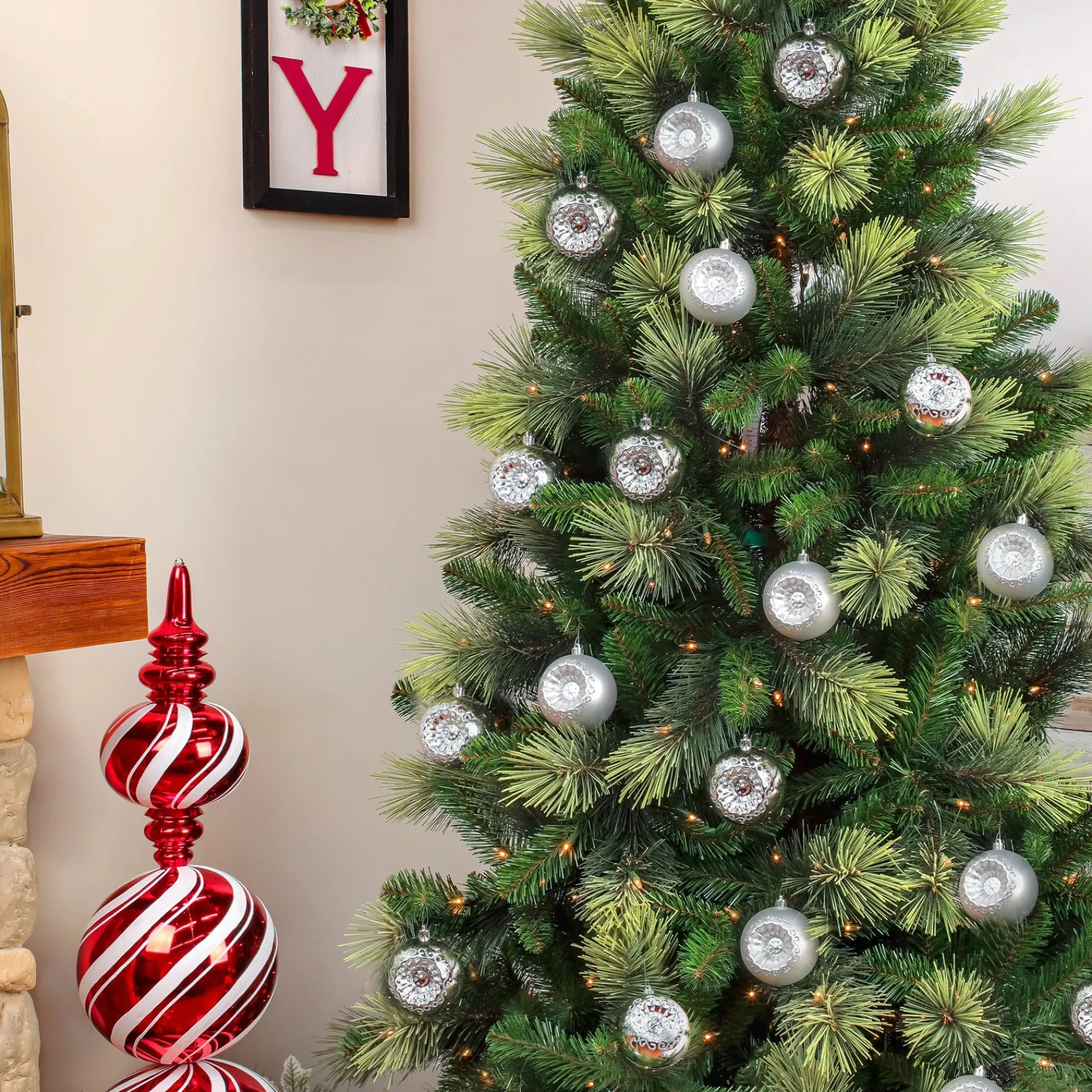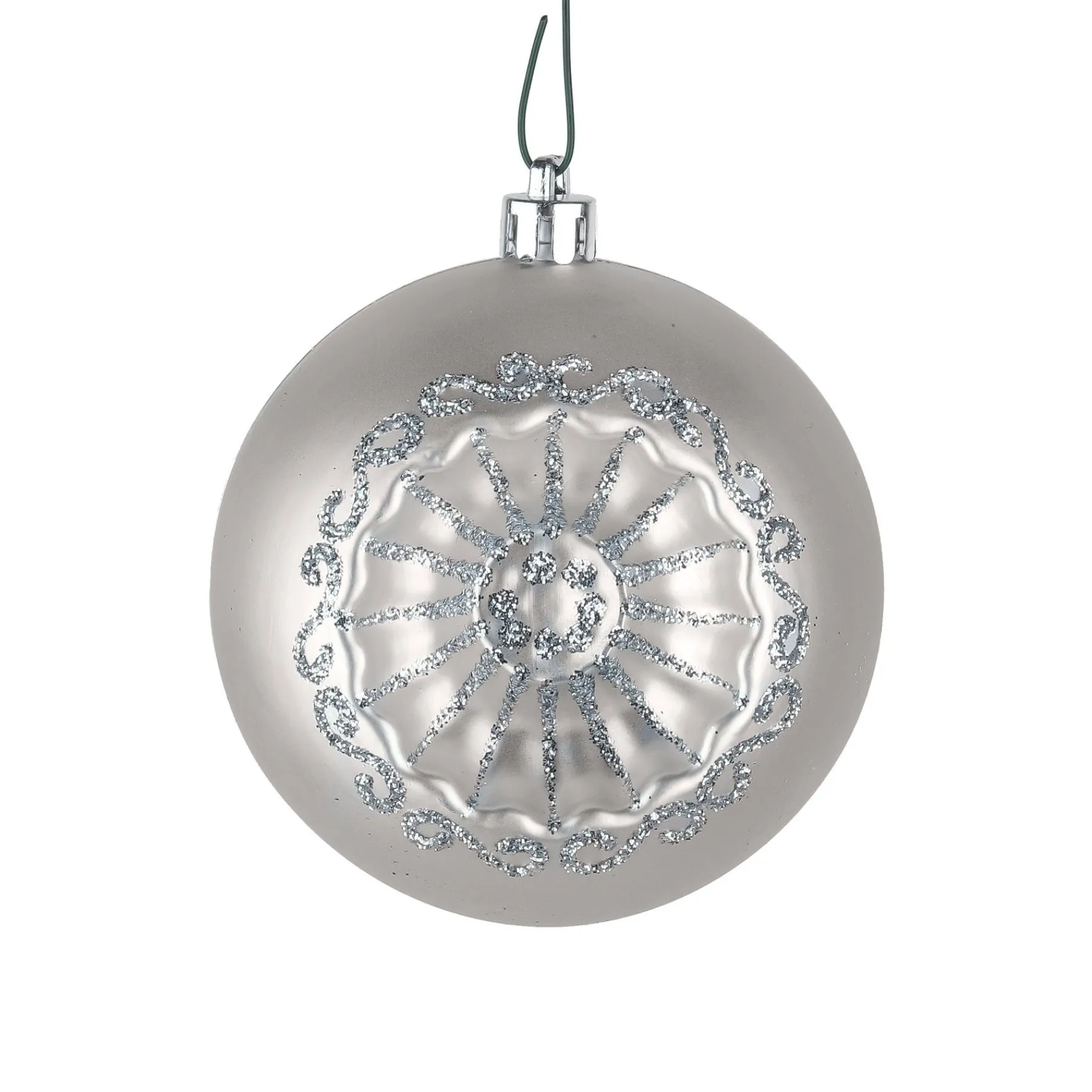 This Set Consists Of Six Silver Color Ball Ornaments That Feature A Recessed Design With Ornate Silver-Sparkled Trimmings. Included Are Ornaments In Both Gloss And Matte Finishes, All Constructed Of Lightweight And Shatterproof Polystyrene Material. Add S