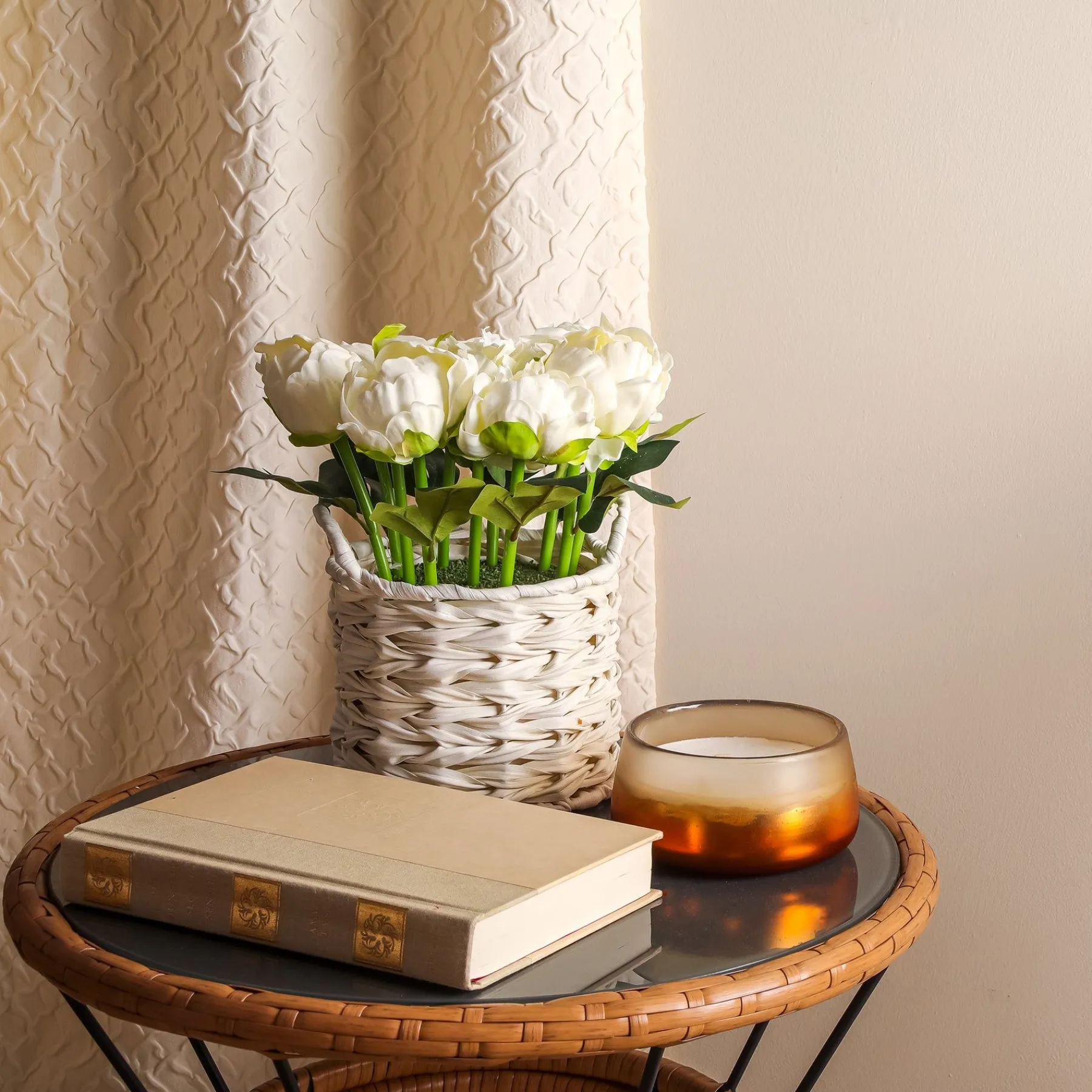 Flower Bouquets-National Tree Company 10″ White Peony Flower Bouquet In White Basket