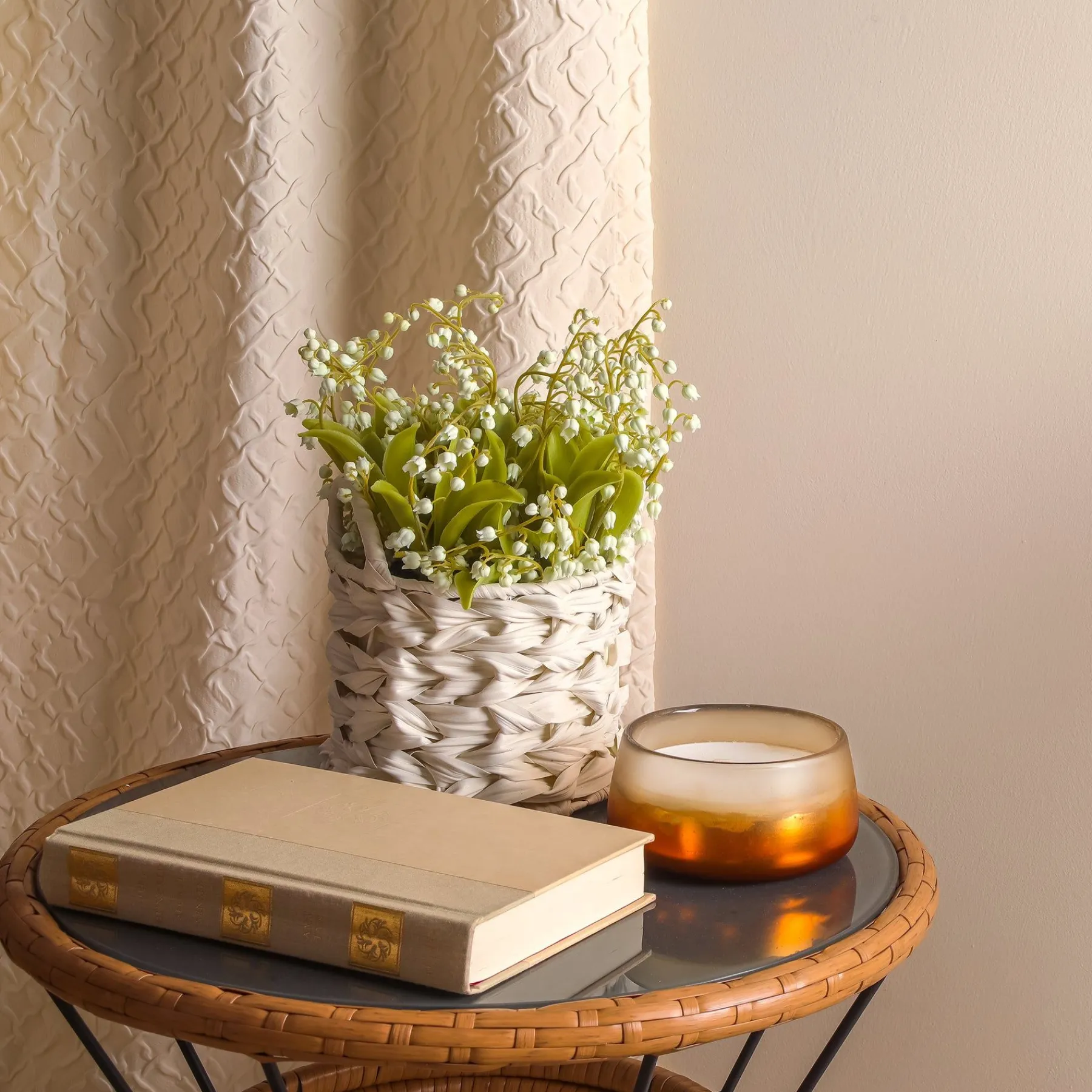 Long, Curling Stems Of Light Green Lily-Of-The-Valley Flowers And Thick Green Leaves Rise From A White Basket With A Wide Weave And Two Loop Handles. The Flowers Are Seated In A Simulated Soil Surface. Add A Spray Of Nature’S Colors To Tabletop Trimmings With These Attractive Artificial Flowers That Are Remarkably Life-Like Yet Maintenance-Free. For Decorative Indoor Display.