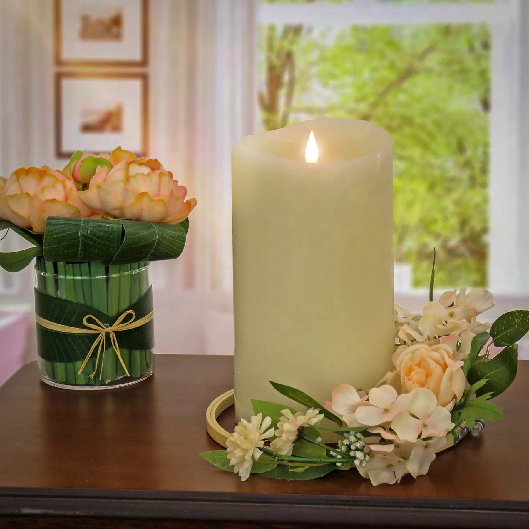 Flower Wreaths-National Tree Company Artificial Wreath Decoration, Pink, Hoop Ring Base, Decorated With Rose And Hydrangea Blooms, Flowing Green Stems, Spring Collection, 12 Inches