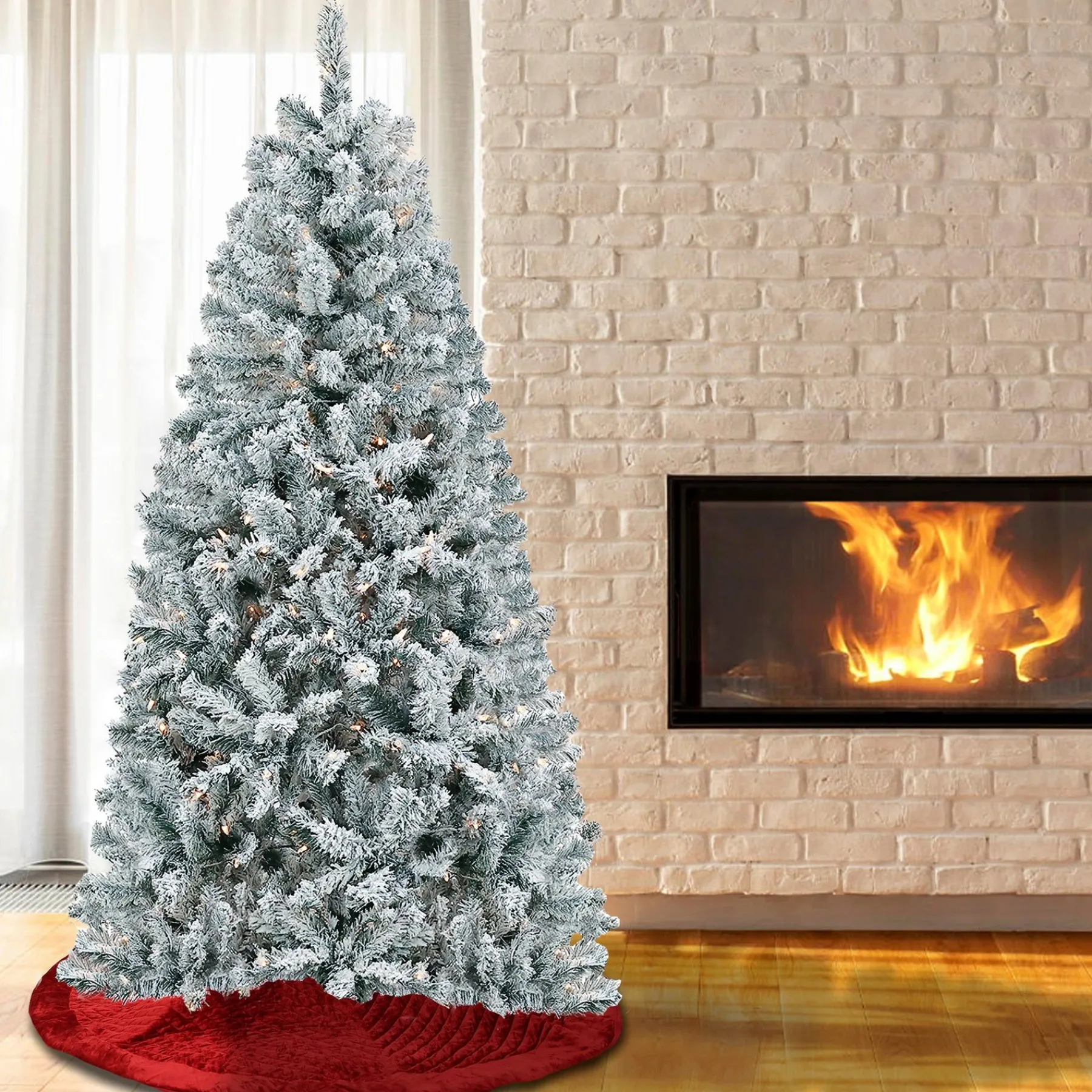 Full-National Tree Company Artificial Christmas Tree, Acacia, Flocked, Clear Lights, Includes Stand, 6 Feet