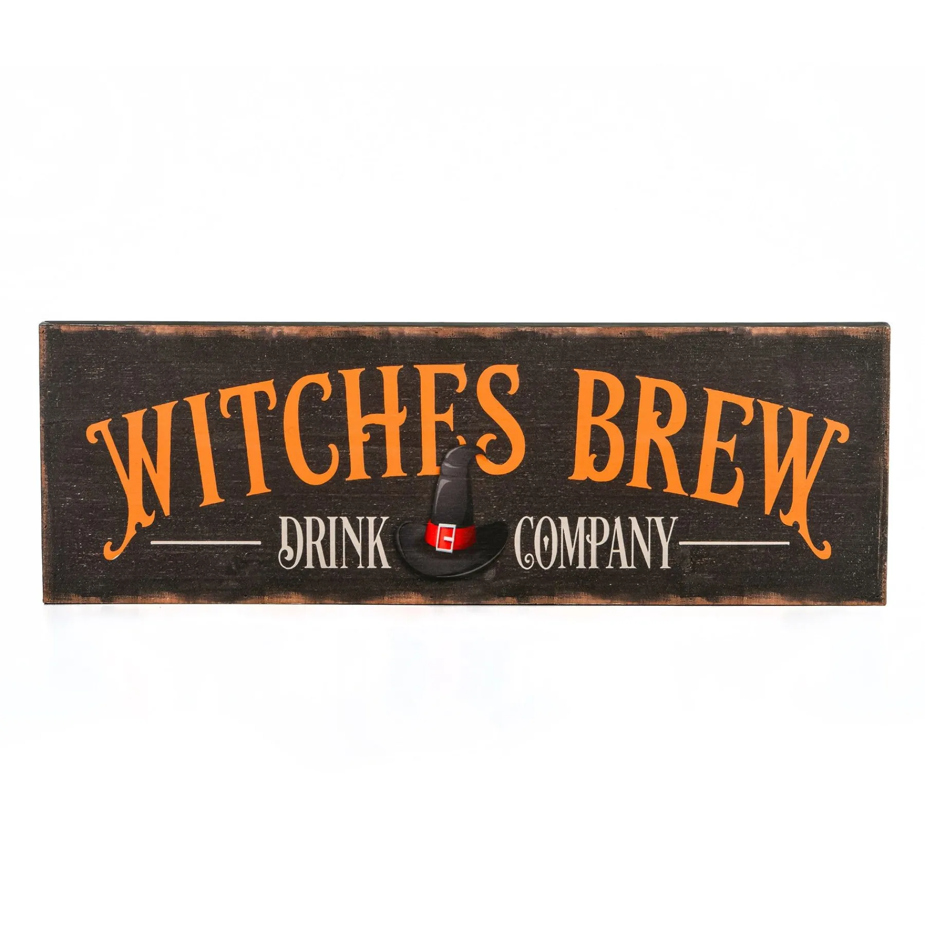 - This Harrowing Halloween Hanging Wall Decoration Is Constructed Of Lightweight Wood Composite Materials And Features A Message With Bright Orange Ornate Letters Spelling Out €Œwitches Brew Drink Company”