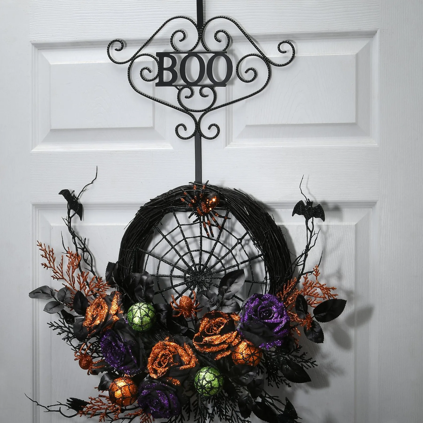 Scare Kids And Parents Alike With National Tree Company’S Black Metal “Boo” Sign Wreath Hanger. This Spooky 17 Inch Wreath Hanger Is Made With A Metal Base And Features An Ornately Crafted “Boo” Sign That Sits Above The Wreath. The Hanger Is Built With Qu