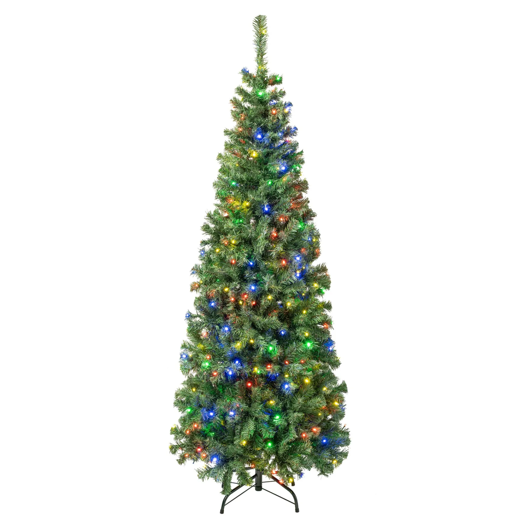 - Create New Christmas Memories With The Sagamore Slim Hinged Tree. Pre-Strung With 400 Multi Led Lights For Added Holiday Cheer And Features Hinged Branches For Easy Assembly. This 6Ft Slim Silhouette Tree Is Perfect For Rooms With Limited Space. Welcome In The Holidays With This Festive Tree.