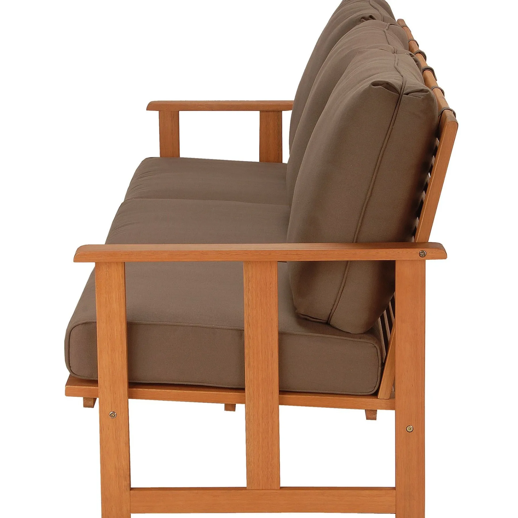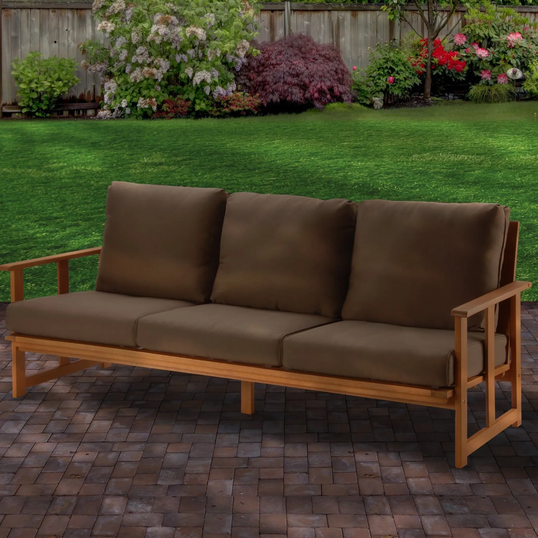 This Indoor/Outdoor Sofa Is Constructed Of Fsc Eucalyptus, A Sustainable, Eco-Friendly Wood Sourced From Managed Forests And Certified By The Forest Stewardship Council. It Is Naturally Weather-Resistant And Its Inherent Oil Content Will Protect Against Moisture, Uv Rays, Decay And Rot. This Wide Inviting Sofa Features Removable Chocolate Color Back And Seat Cushions With A High-Density Sponge Filling That Is Thick, Soft And Comfortable.