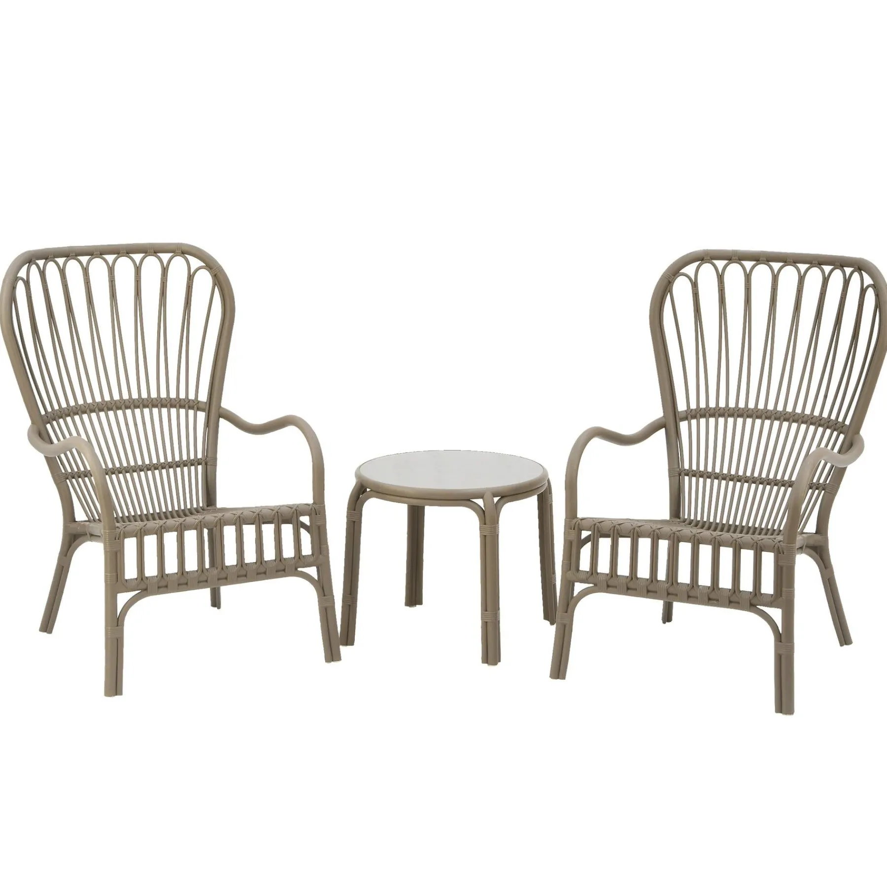 This Indoor/Outdoor Chat Set Is Constructed Of High Strength Injection Molded Polypropylene Material That Is Durable, Weather-Resistant And Long Lasting. Both Chairs Have A Wicker Weave Design In A Gray Finish, Each With Armrests For Added Comfort. A Sturdy, Matching Four-Leg Table With A 5 Mm Tempered Glass Top Surface Completes The Set. Strong Yet Lightweight, These Pieces Are Effortless To Transport Or Rearrange And Just As Easy To Maintain And Care For. Some Assembly Required.