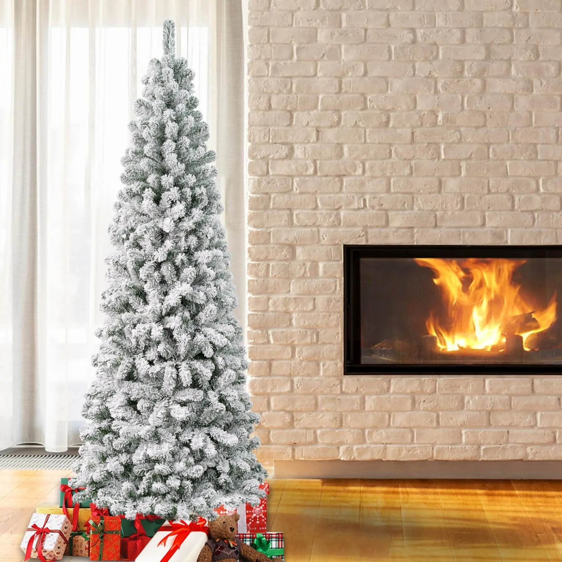 Slim-National Tree Company First Traditions Collection Artificial Christmas Tree, Acacia, Flocked, Includes Stand, 7.5 Feet