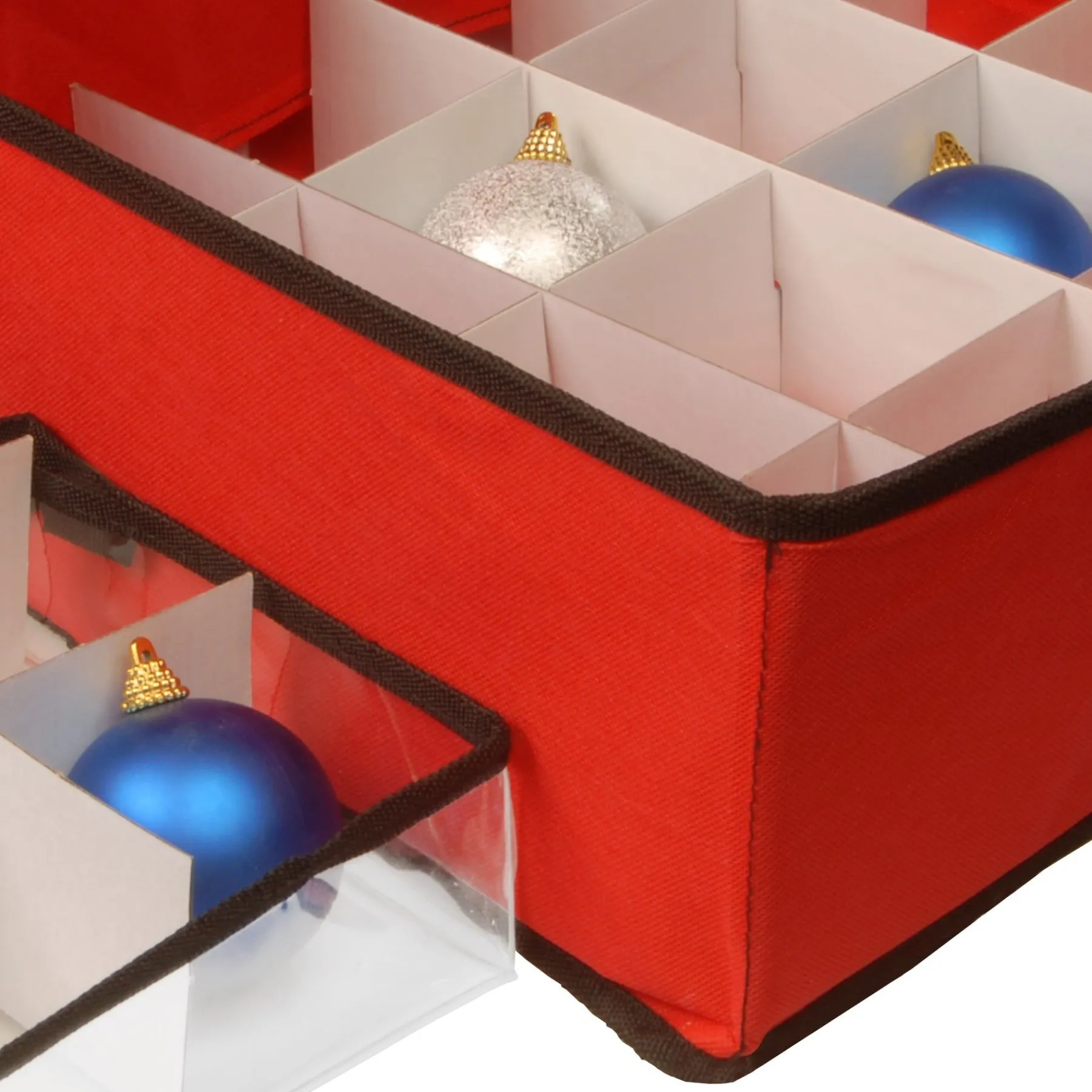 This Efficient Container Provides Safe And Organized Packing Of Ornaments For After Holiday Storage. It Is Constructed Of Durable Stitched Seam Polyester Material With Zippered Lid And Convenient Carry Handles. The Piece Contains Two Removable Cardboard Dividers That Allow For The Storage Of Up To 52 Ornaments.