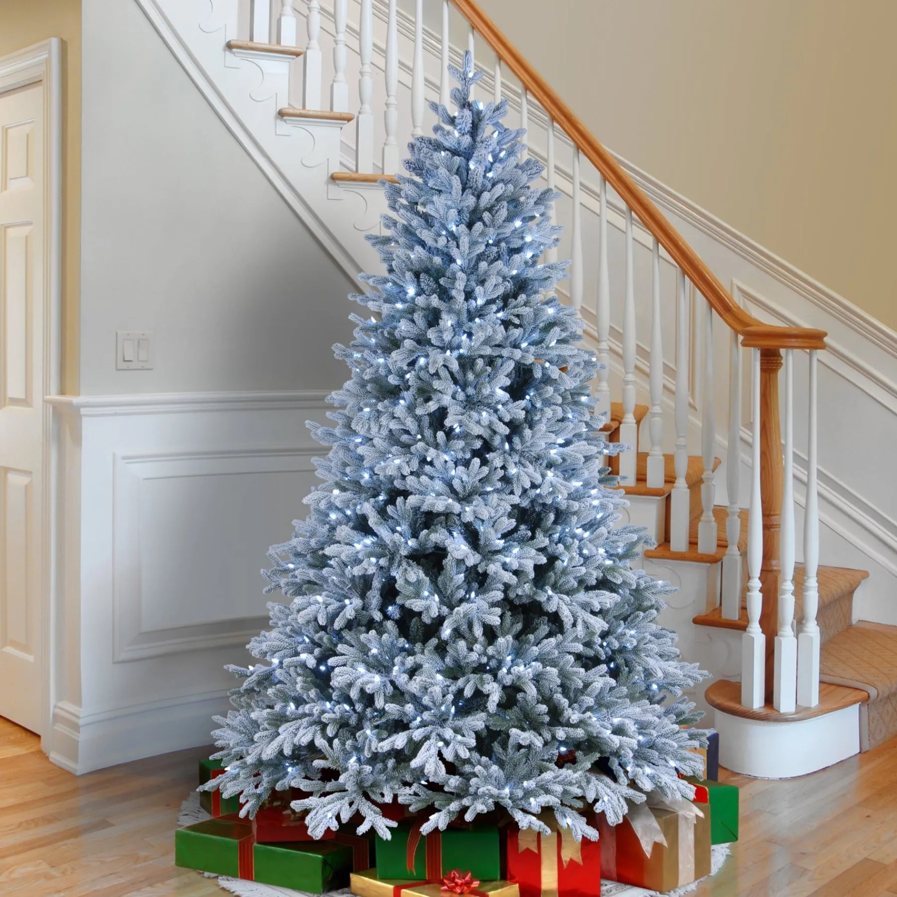 - This Snowy Hamilton Spruce Pre-Lit Artificial Green Christmas Tree Is 7.5 Feet Tall With A 60 Inch Base Diameter. Featuring Hundreds Of ‘Feel Real’ Individually Crafted Branch Tips To Create Full Bodied Branches, This Tree Is Designed To Look And Feel Lif