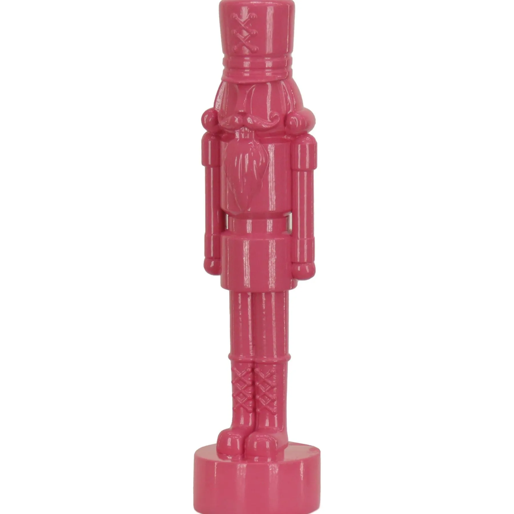 Tall And Slender Standing Atop A Thick Pedestal Base, This Stylized Bavarian Soldier Nutcracker Features All The Familiar Design Details. It Is Constructed With A Combination Of Stone Powder And Poly Resin Materials In A Deep Pink Color With A High Gloss Finish. This Decorative Piece Will Add A Fun And Festive Touch To Indoor Holiday Trimming Whether Displayed On Floor Or Tabletop.