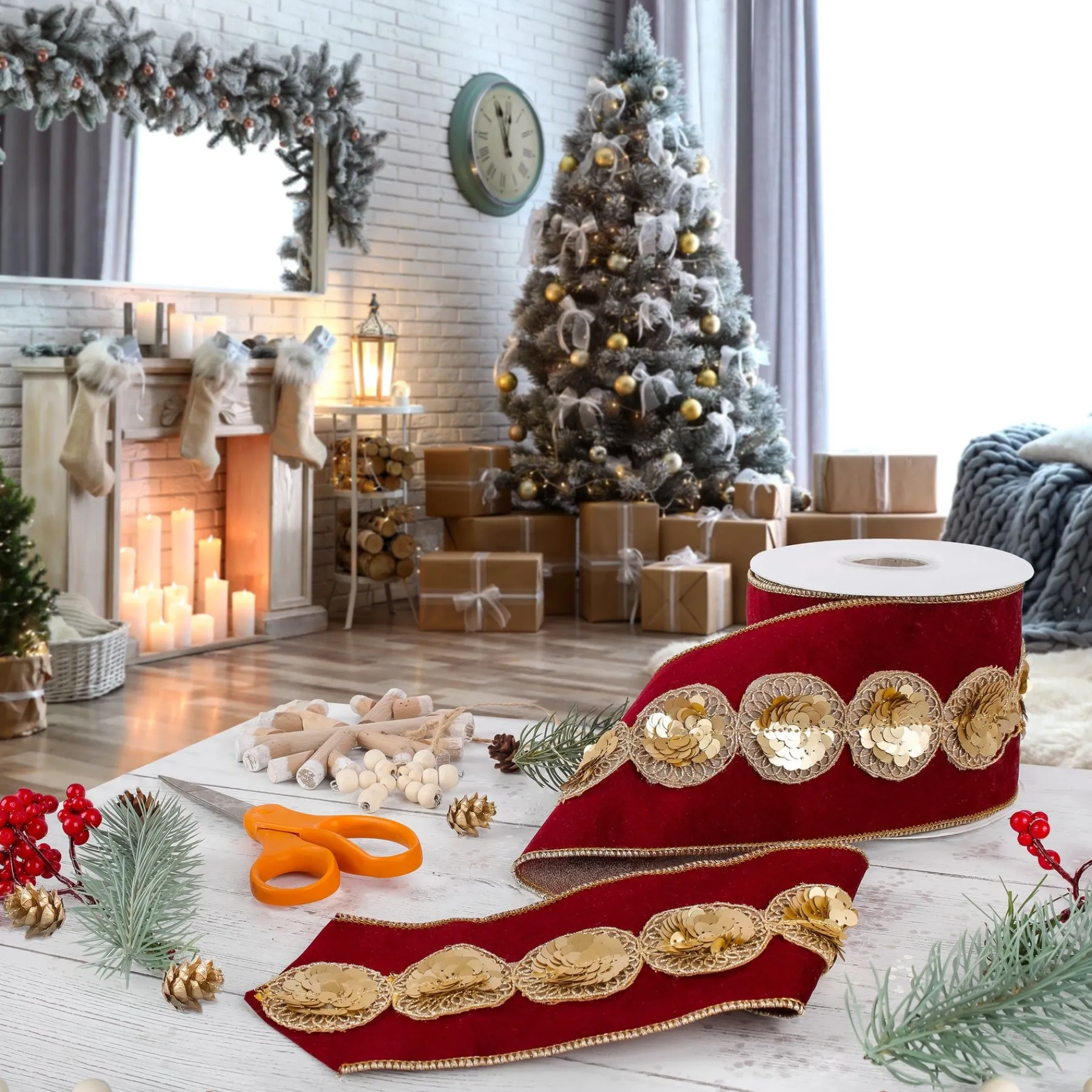 Show Some Creativity With This Sparkling Ribbon Featuring A Repeating Pattern Of Ornately Stitched And Beaded Medallions. This Unique And Versatile Ribbon With Flexible Wire Borders Is Perfect For Holiday Decorating, Tree Trimming, Gift Wrapping And Other