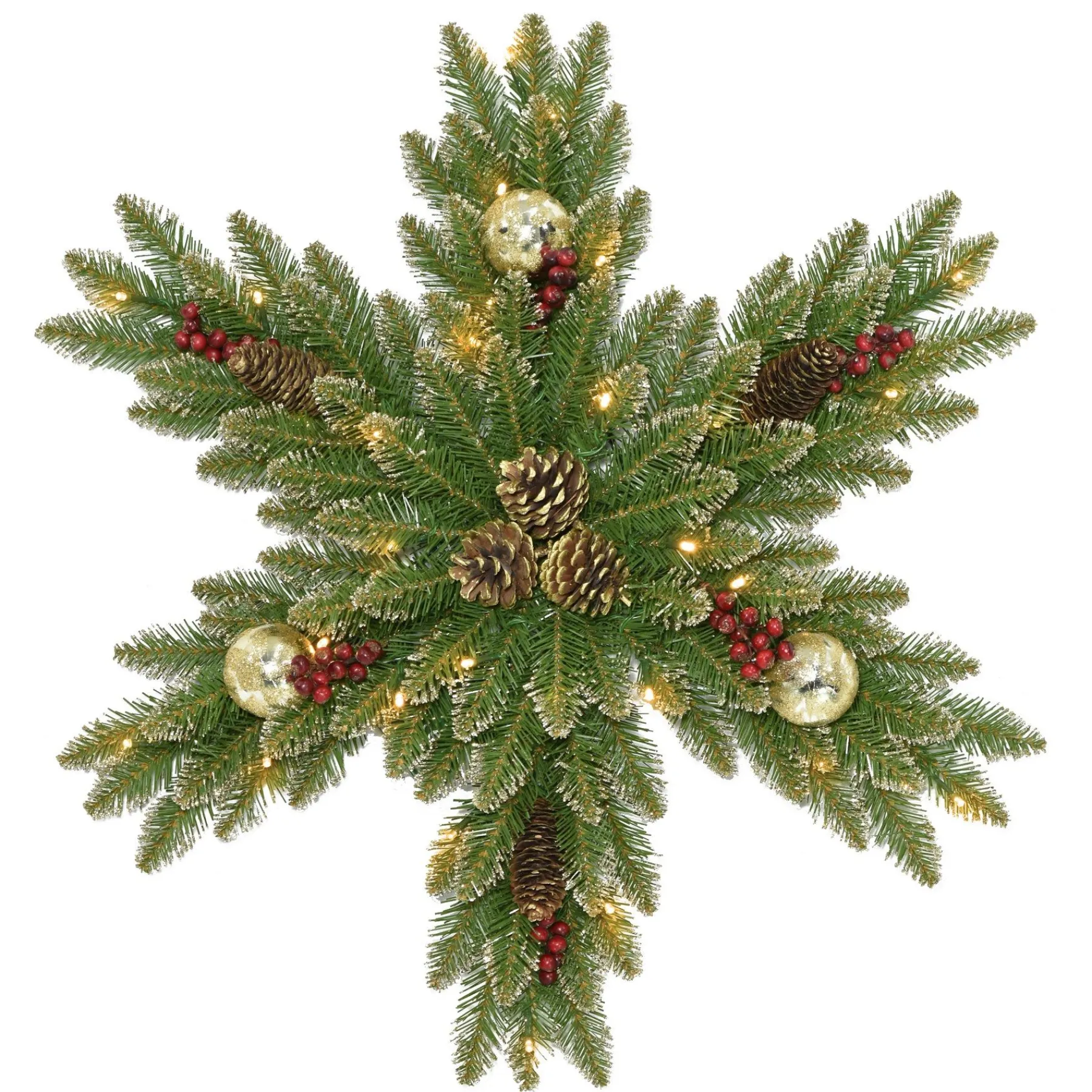 - Designed With A Dunhill Fir Branch Base, This Pre-Lit Artificial Christmas Hanging Snowflake Is 32 Inches Long And Decorated With Pine Cones, Berry Clusters And Frosted Branches.