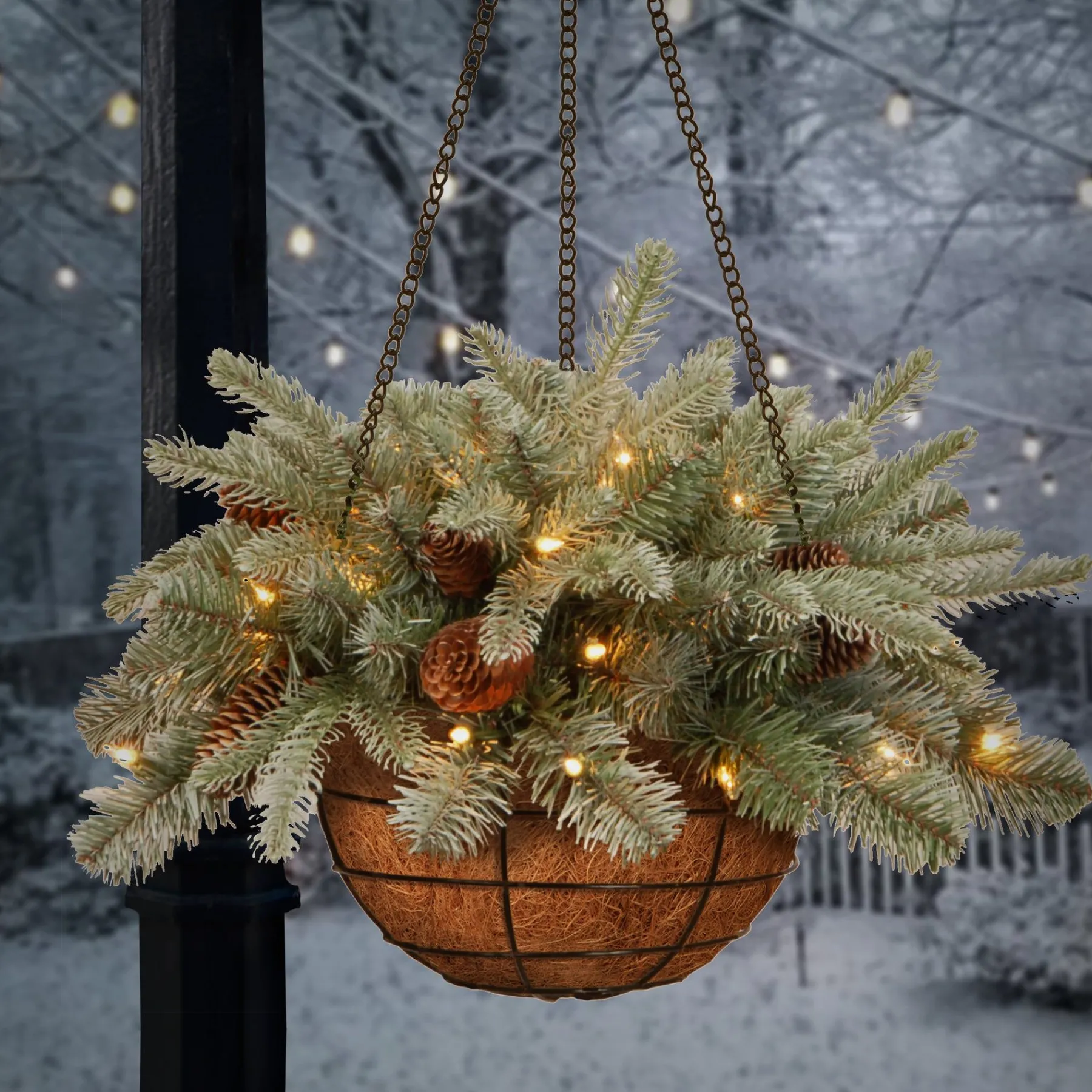 - This Arctic Spruce Pre-Lit ‘Feel Real’ Artificial Christmas Hanging Basket Is 20 Inches Wide And Designed To Look And Feel Lifelike, Featuring 114 Individually Crafted Branch Tips To Create Full Bodied Branches.