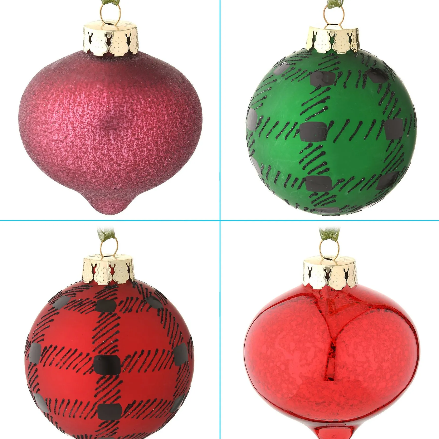 This Set Of 20 Vintage-Style Blown Glass Ornaments Feature A Motif Of Bright And Green Christmas Colors In Both Gloss And Matte Finishes. Included Are Ball, Teardrop, And Ornate Shapes Many With Hand-Painted And Glittered Designs Offering A Relaxed Country Flavor. Each Ornament Includes A Ribbon Loop For Hanging Convenience. Boxed In White Heavyweight Cardboard With Cushioned Compartments, These Beautiful Ornaments Will Become A Part Of Your Holiday Decorating For Years To Come.