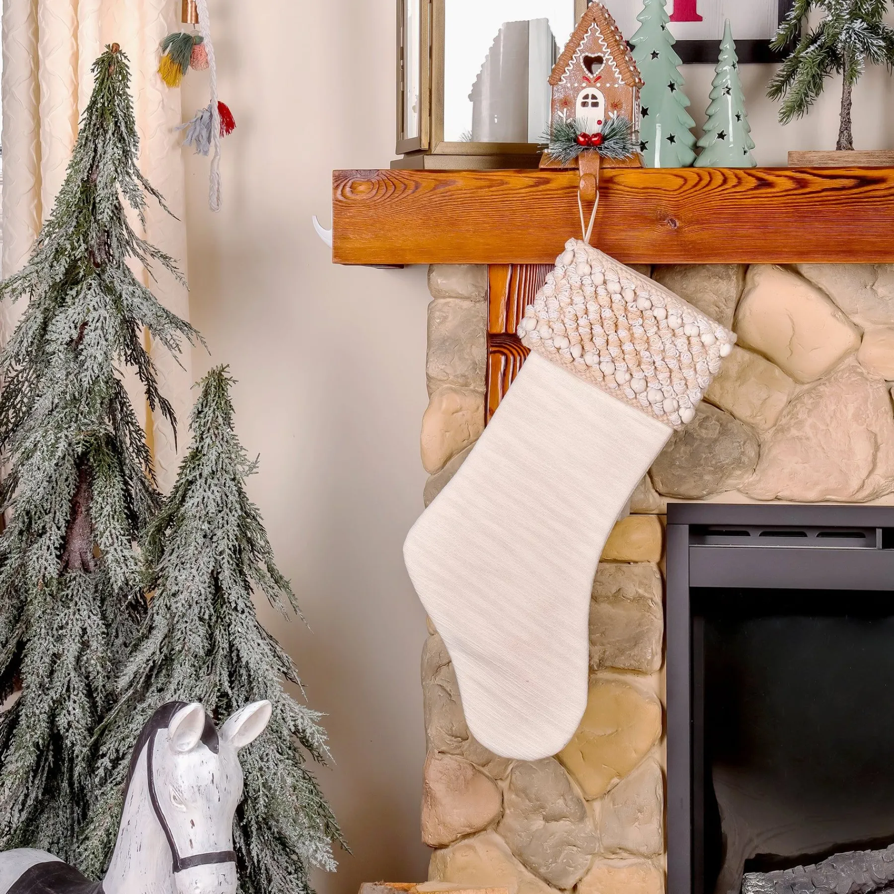 This Spacious Stocking Is Long And Wide Allowing Santa To Fill It With Lots Of Christmas Treats. The Smooth And Sleek Sock Design Is Contrasted By The Thick Stitched Texture Of The Woven Cuff. A Strong Loop Is Included For Hanging. This Stocking Is Constructed Of Durable Cotton Materials Fashioned For Many Years Of Holiday Use.