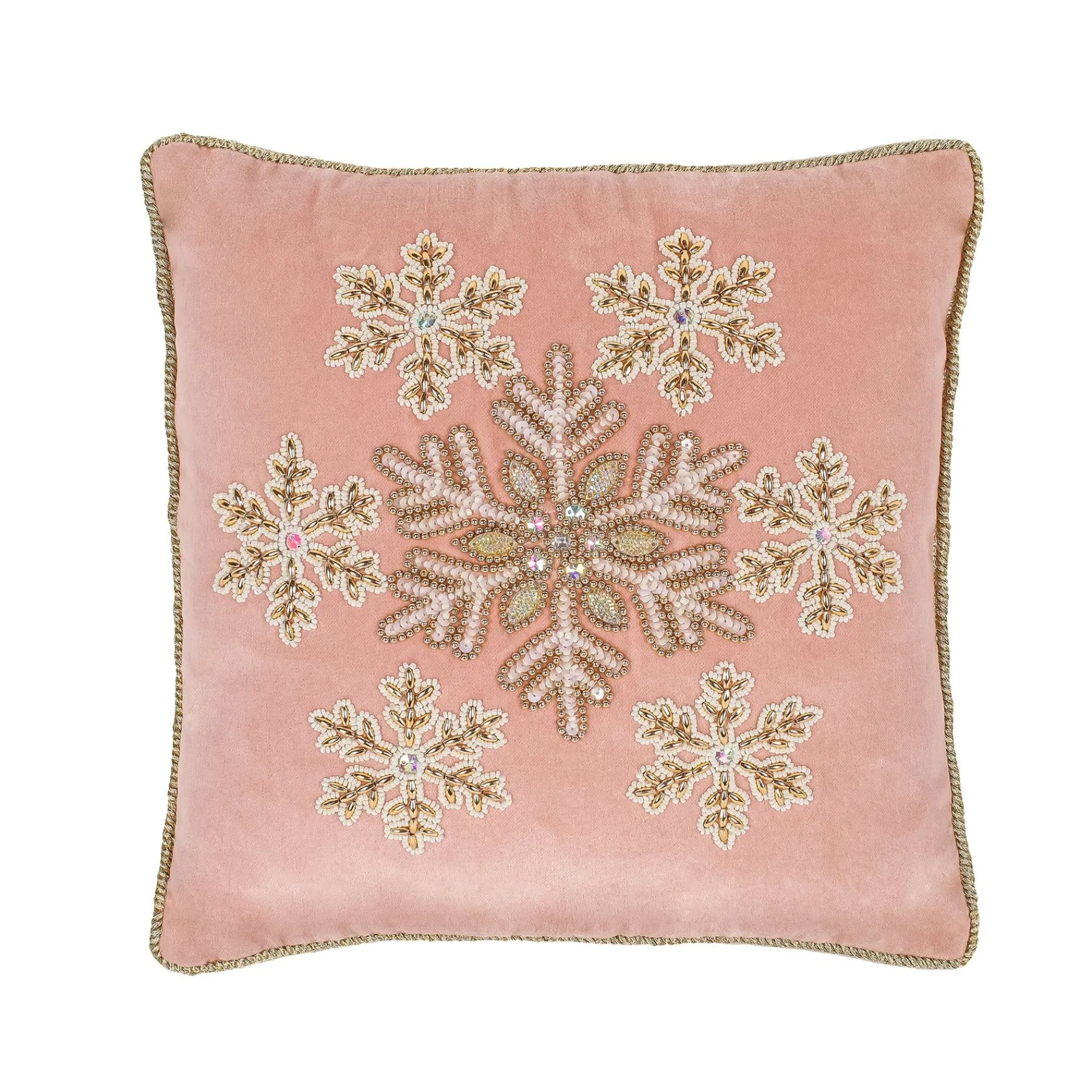 This Christmas Themed Velvet Pillow Features A Motif Of Ornate Snowflakes Stitched With An Assortment Colorful Beads And Sequins. Smooth And Soft, This Furniture Accent Is Made With A Durable Cotton Outer Shell And Supportive Cotton Fill With A Decorative Piping Edge. Back Side Of Pillow Is Solid Color. Add A Touch Of Warmth And Whimsy To Your Holiday Decorating Scheme With This Comfy Cushion.