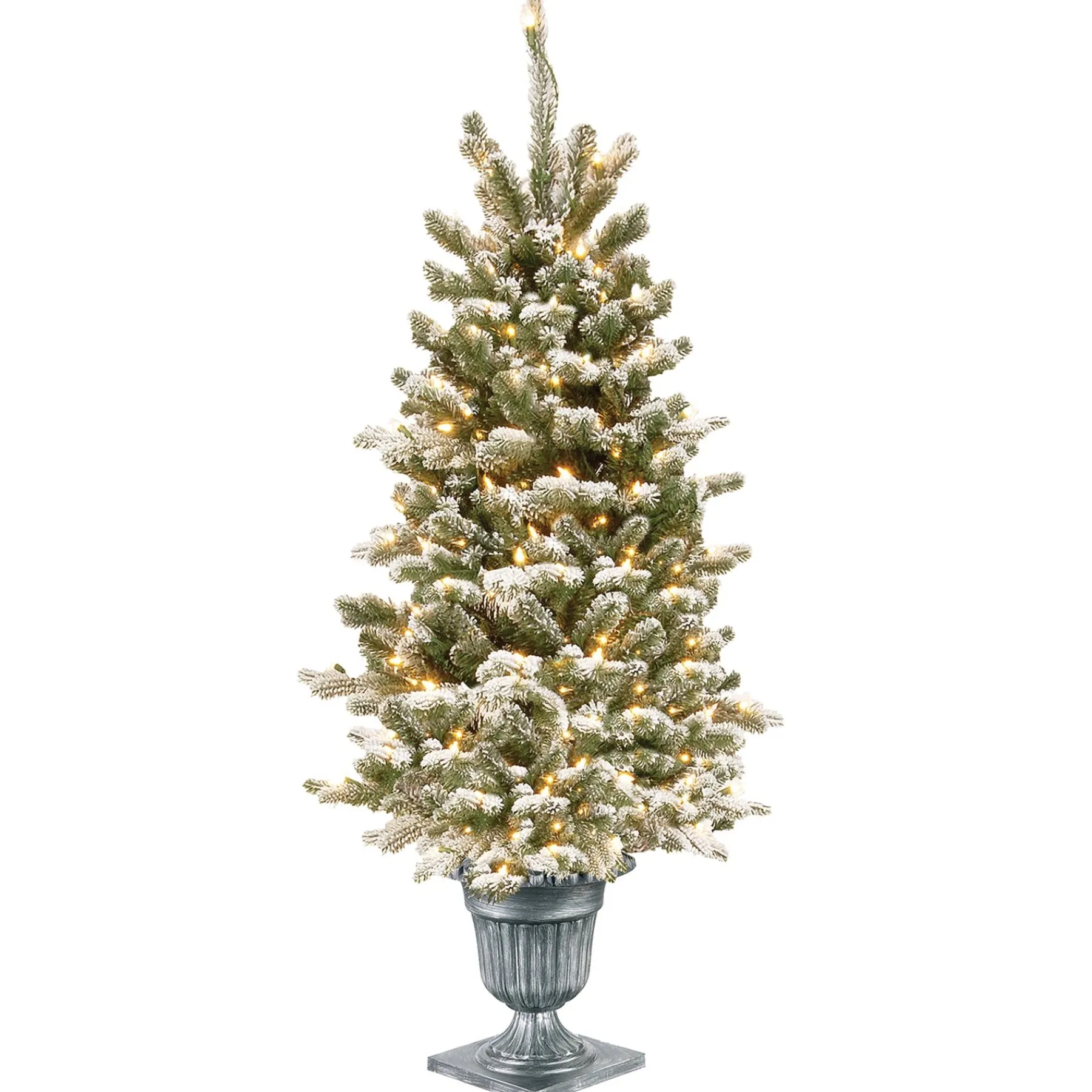 Transform Your Home Into A Winter Wonderland With National Tree Company’S Pre-Lit Artificial Entrance Christmas Tree. This Majestic Snowy Sheffield Spruce Tree Is 4 Feet Tall And 20 Inches In Diameter At The Bottom, Perfect For Entryways And Doors. Friends And Family Alike Will Marvel At How The Tree Closely Mimics Those Outside. Made To Look And Feel Lifelike, The Stunning Realism Of The Tree Is Defined By Its Close Attention To Detail, Featuring Hundreds Of Individually Crafted Branch Tips That Make Up The Wide, Full-Bodied Branches That Create Space For Your Lights And Ornaments. The Tree Is Designed With A Hinged Branch System That Allows The Branches To Swing Down For A Quick And Simple Set-Up And Fold Back In For Easy Storage. Set Aside 45-60 Minutes After Assembly To Properly Shape The Tree By Peeling Back The Branches And Pulling The Tips Apart To Give The Branches A More Full-Bodied Look. This Fantastically Festive Tree Is Strung With 100 Ul Lights Prior To Packaging And Includes An Ornate, Metal Base For A More Convenient Setup. The Lights Operate Individually, So If The Bulb Lens Has Not Been Cracked Or Broken, The Light Set Will Continue To Illuminate Except For Any Individual Bulbs That Are Not Working. Before Dressing The Tree In Twinkling Lights And Glistening Ornaments, Consider Placing It In A Living Room Or Dining Area Where It Can Be Viewed From Multiple Angles And Does Not Block Any Entryways. Constructed With Sturdy, High Quality Materials And Hypo-Allergenic, Fire-Resistant Needles, This Tree Is Built To Bring Holiday Cheer For Years To Come. At National Tree Company, We Strive To Create High Quality Christmas Decorations To Help You Transform Your Home So You Can Keep Making Every Holiday Moment Magical.