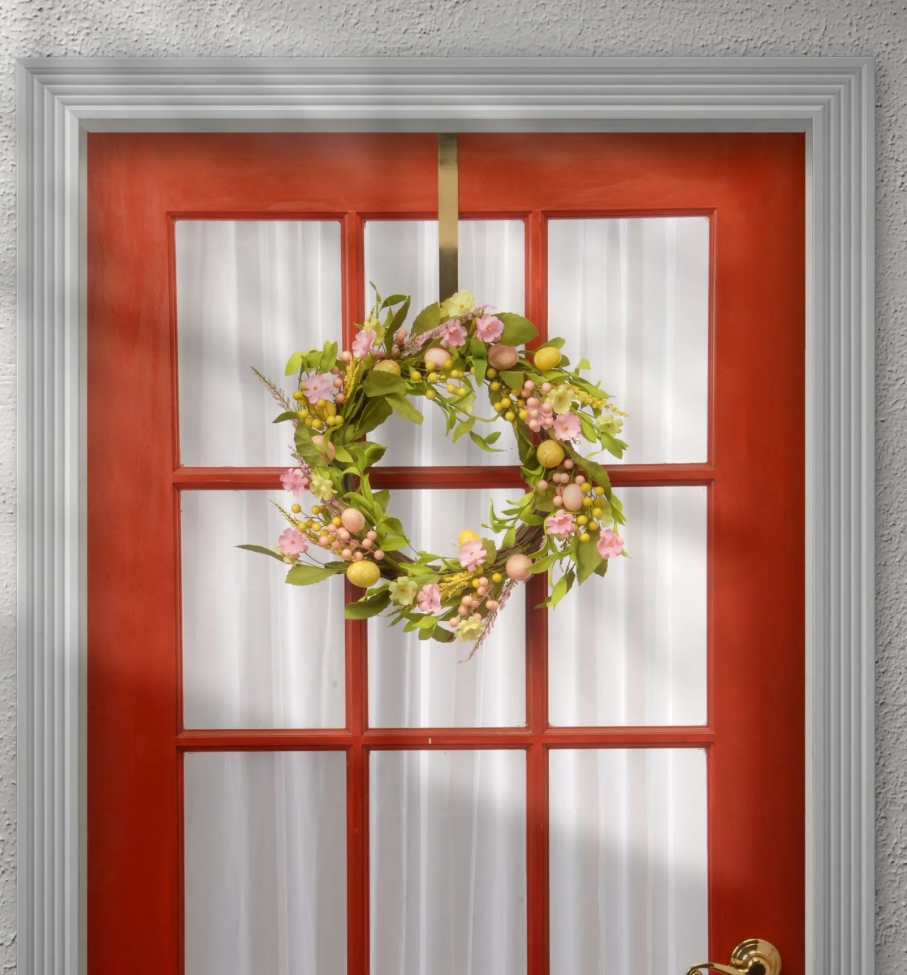 - This Spectacularly Spring Decoration Is The Perfect Addition To Any Easter Arrangement, Featuring A Wreath Trimmed With Swirling Stems, Pastel Colored Eggs And Colorful Flower Blooms.