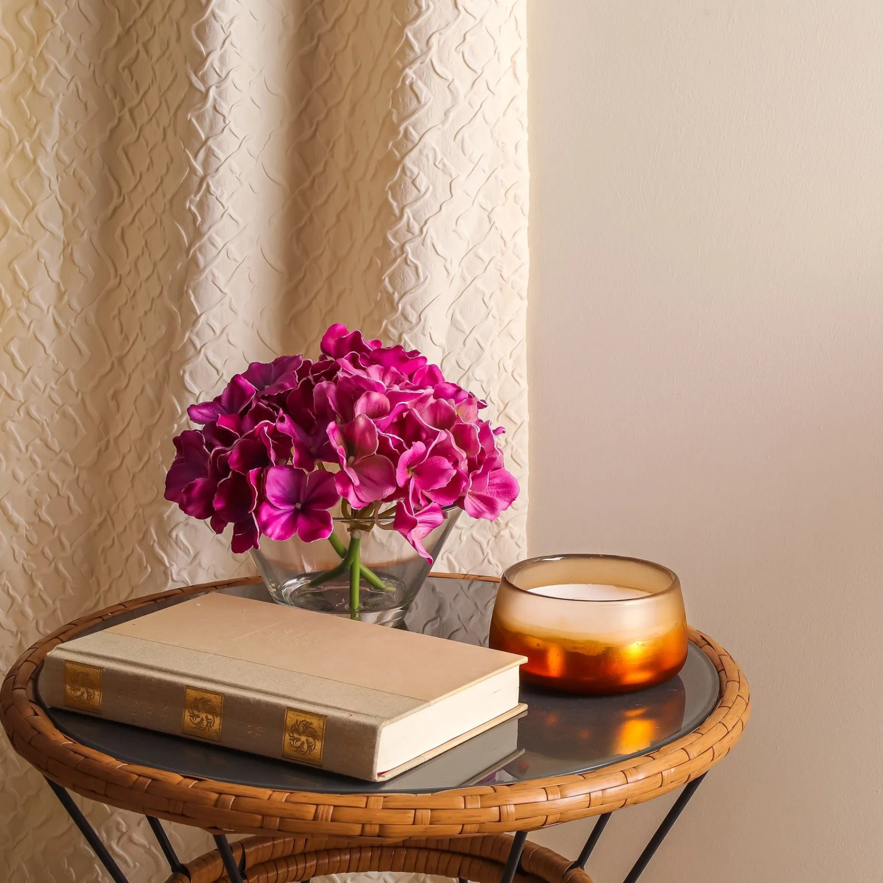 This Tight Bouquet Of Dark Purple Hydrangea Flower Blooms Is Seated In A Round Clear Glass Vase With Their Green Stems Resting In A Simulated Pool Of Water. Add A Burst Of Color To Tabletop Trimmings With These Attractive Artificial Flowers That Are Remarkably Life-Like Yet Maintenance-Free. For Decorative Indoor Display.
