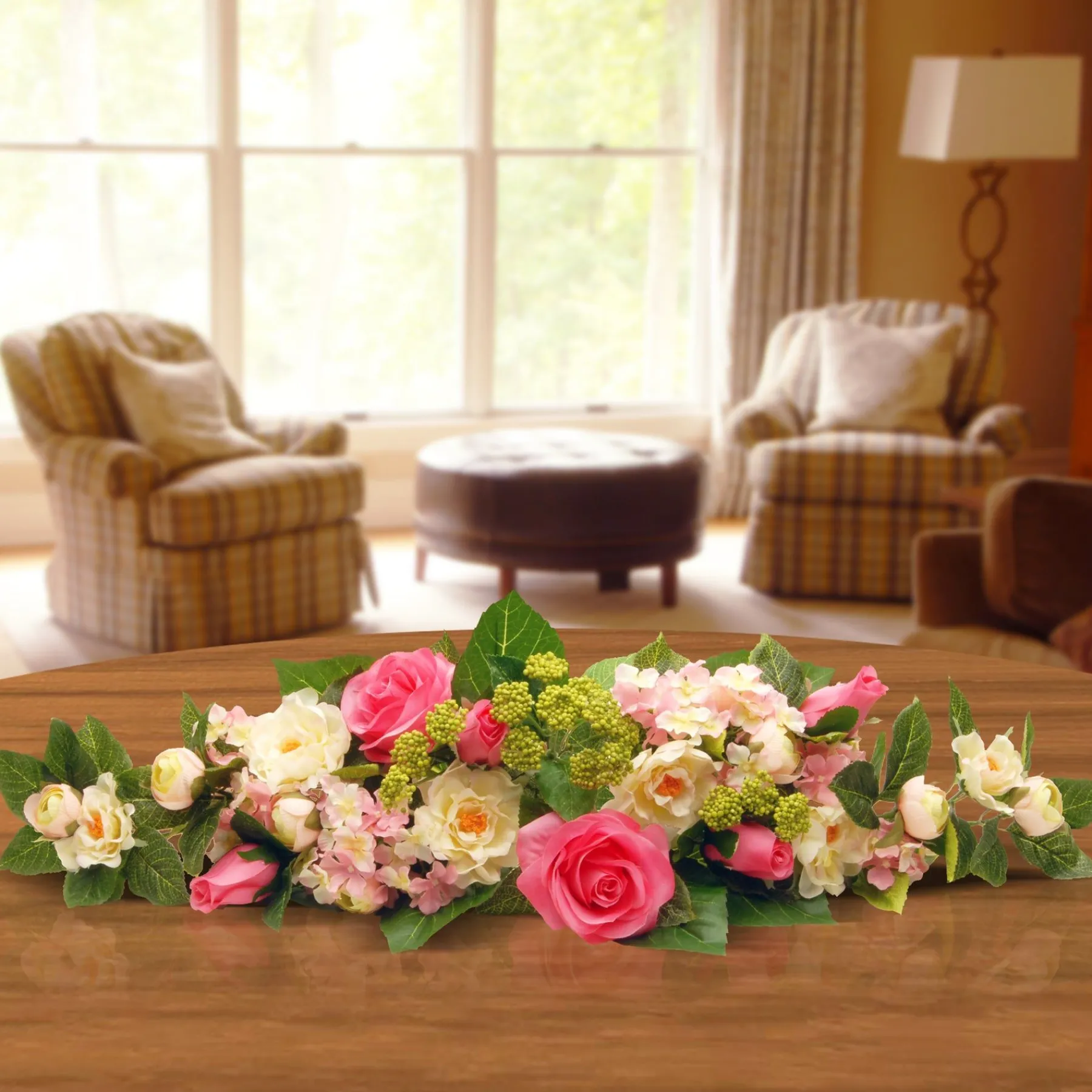 - This Spectacularly Spring Decoration Is The Perfect Complement To Any Decorative Arrangement, Featuring Large Blooms Of Pink Roses And White Hydrangea Flowers.