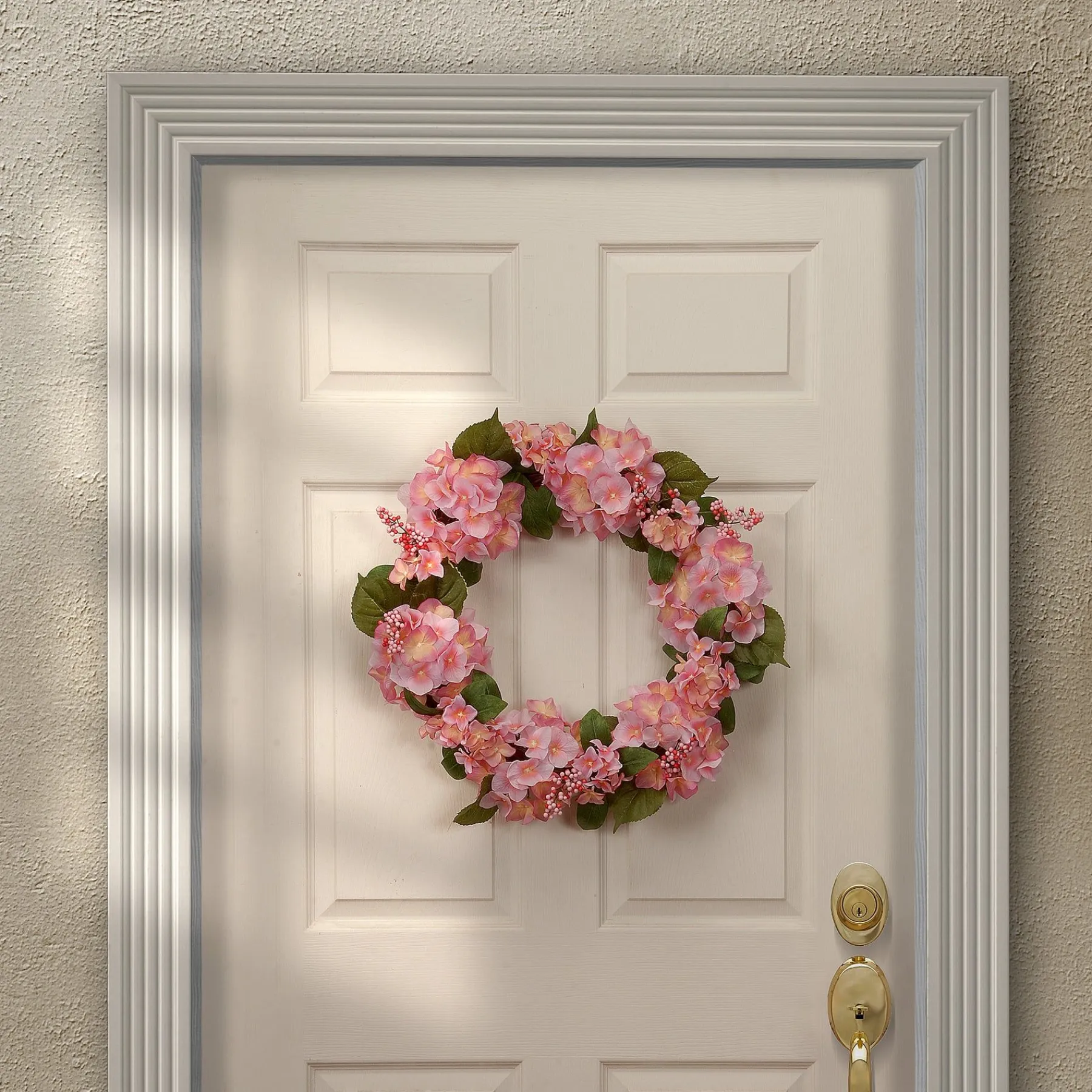 - This Spectacularly Spring Decoration Is The Perfect Complement To Any Decorative Arrangement, Featuring Large, Pink Hydrangea Blooms, Pink And Red Berry Clusters And A Swirl Of Leafy Greens.