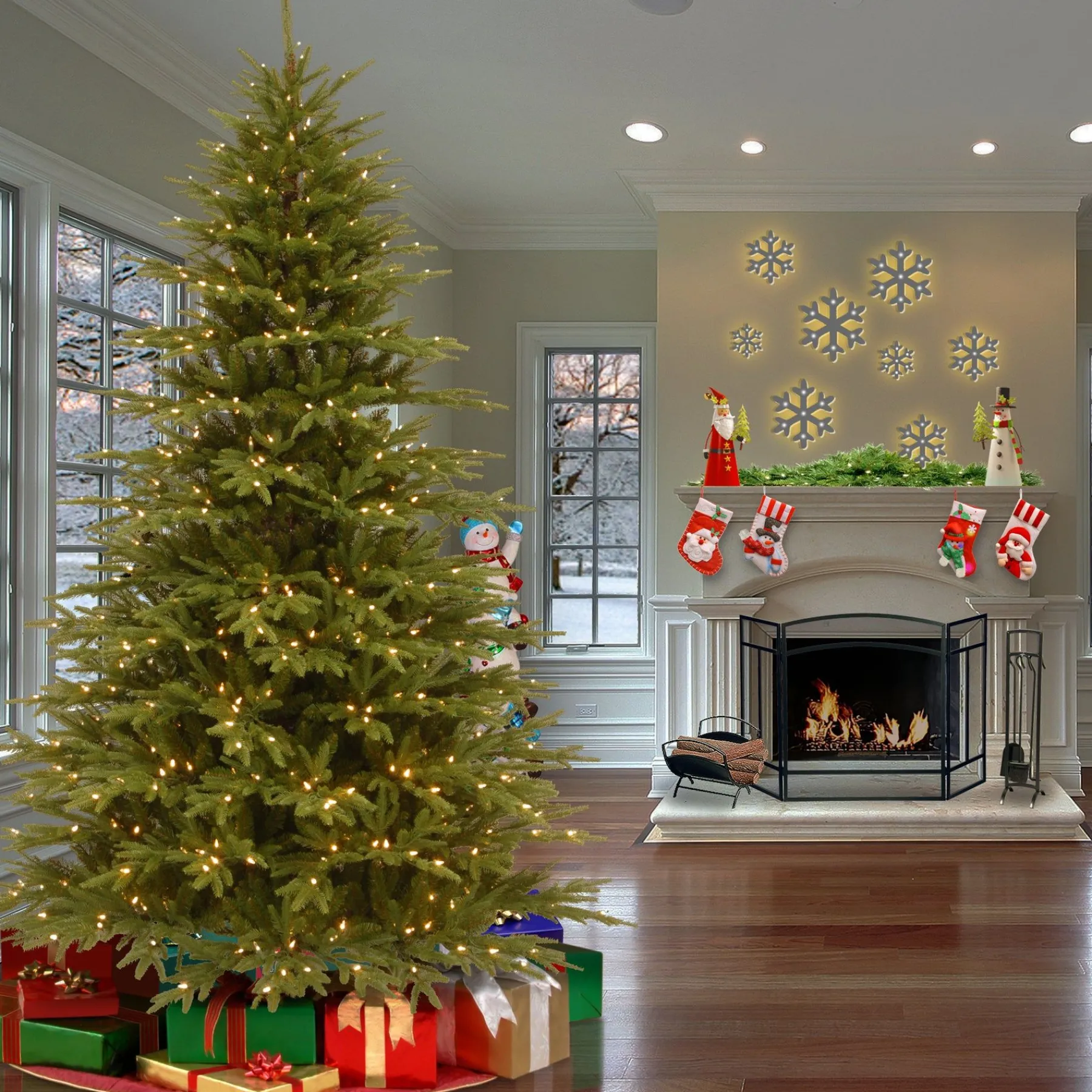 This Monterey Fir Tree Features Feel RealĀ® Branch Tip Technology, Creating A Tree With Remarkable Realism. These Crush-Resistant Branch Tips Are Molded From Real Tree Branches For An Authentic Living Tree Appearance. It Is Pre-Strung With 800 Clear Lights That Remain Lit Even If A Bulb Burns Out. Three Section Construction And Hinged Branches Add To Ease Of Assembly. Sturdy Folding Metal Tree Stand Is Included.