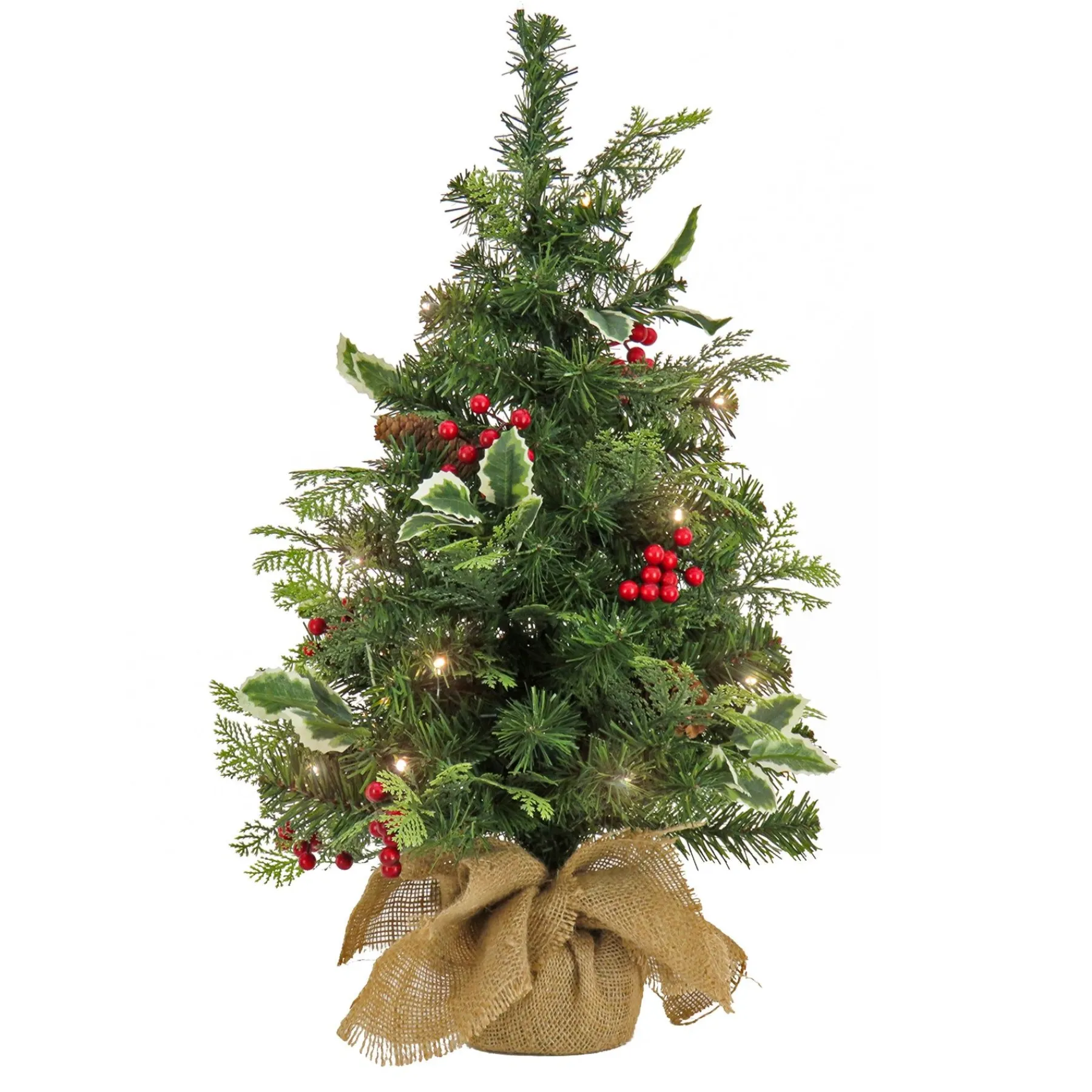 At Only 2 Ft. Tall, This Holly Berry Tree Is Great For Tabletop Display Or For Adding Holiday Cheer To Children’S Or Secondary Room. It Is Seated In A Burlap Bag Base, Features A Mixture Of Evergreen And Cedar Branch Tips, And Is Trimmed With Red Berries,
