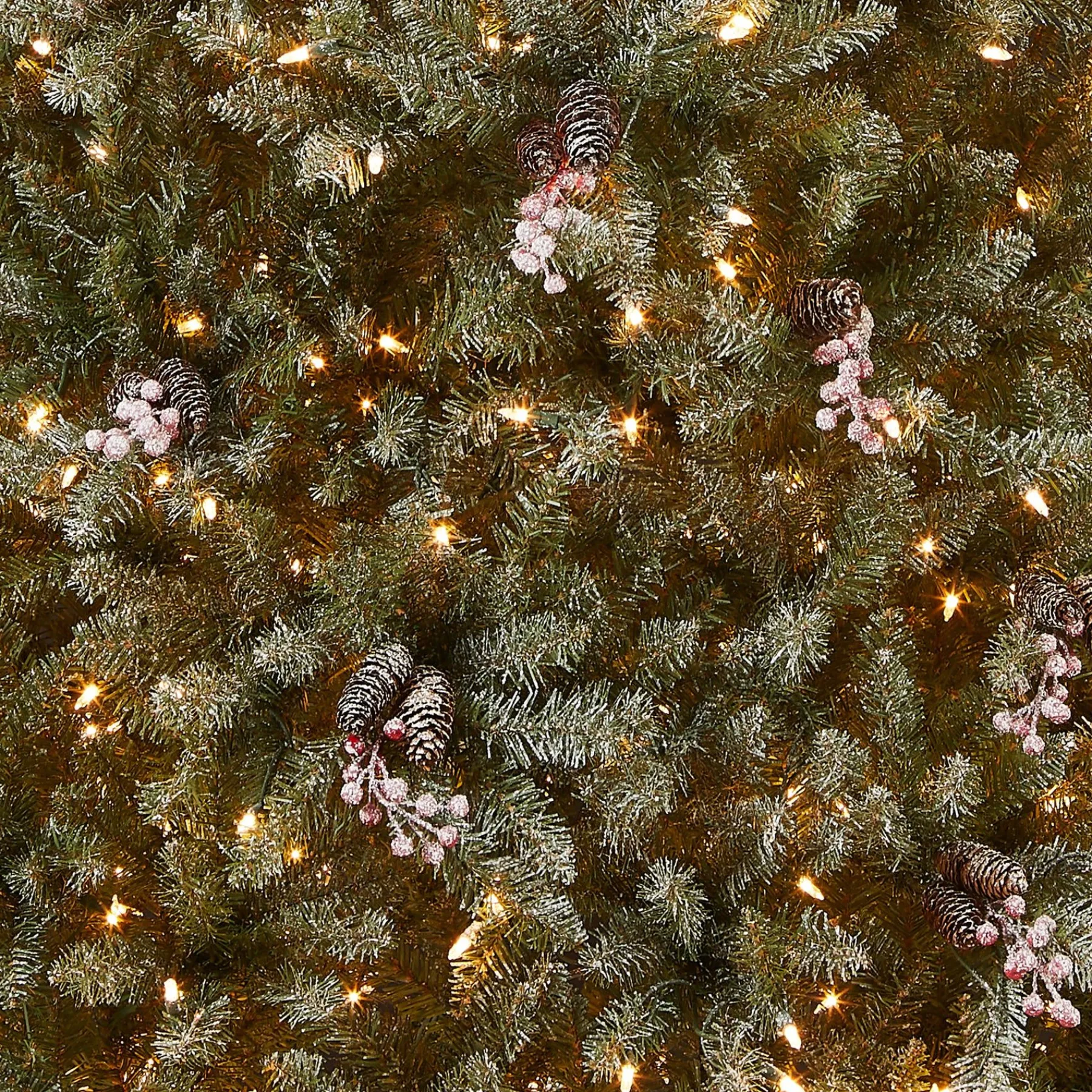 The Dunhill Fir Tree Features Snow Sprinkled Branch Tips And Is Trimmed With Clusters Of Red Berries And Pinecones. It Is Pre-Strung With 700 Clear Lights That Remain Lit Even If A Bulb Burns Out. This Three Section Tree Features Hinged Branches For Ease Of Assembly. Sturdy Folding Metal Tree Stand Is Included.