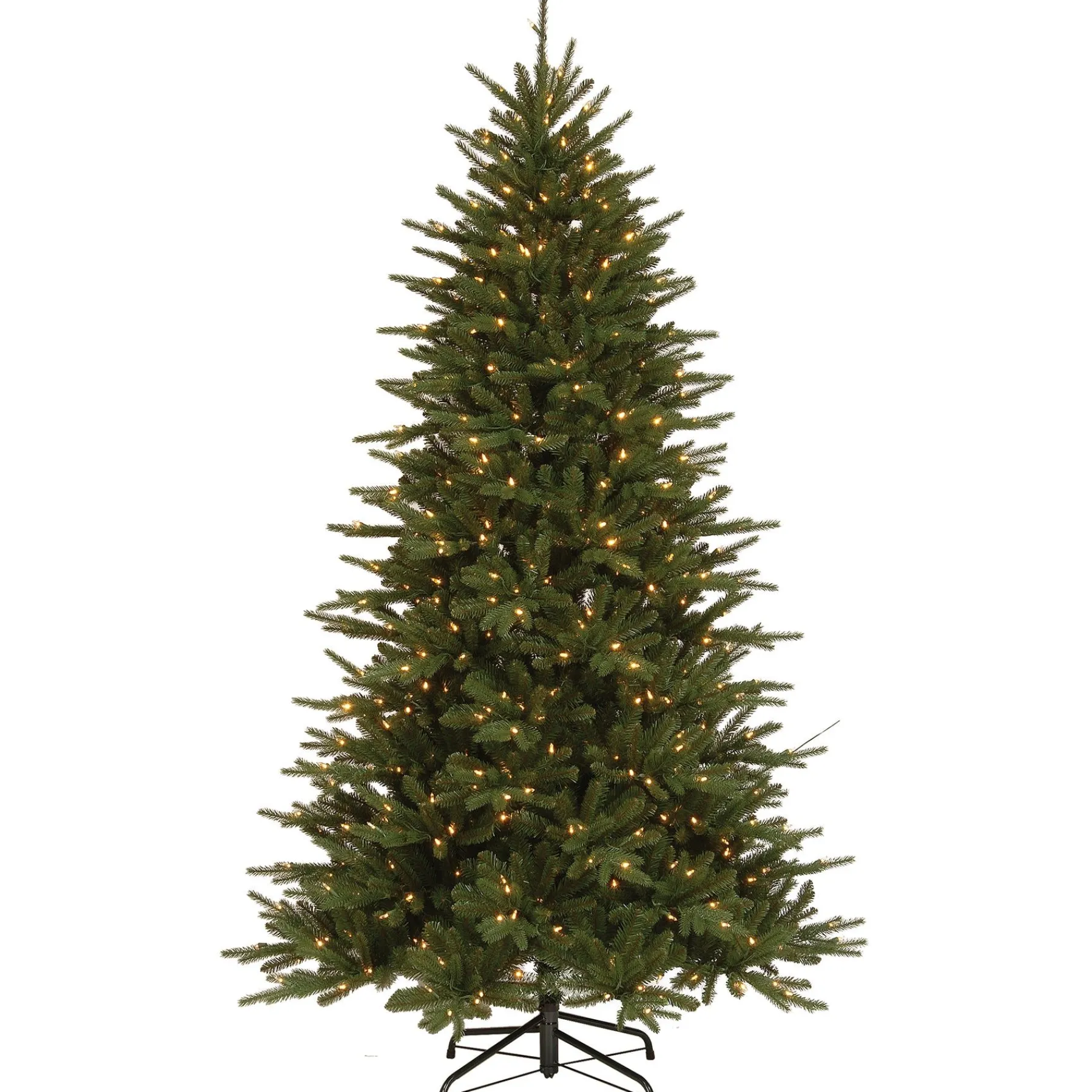 - This Easton Spruce Pre-Lit Artificial Green Christmas Tree Is 7.5 Feet Tall With A 58 Inch Base Diameter. Featuring Hundreds Of ‘Feel Real’ Individually Crafted Branch Tips To Create Full Bodied Branches, This Tree Is Designed To Look And Feel Lifelike.