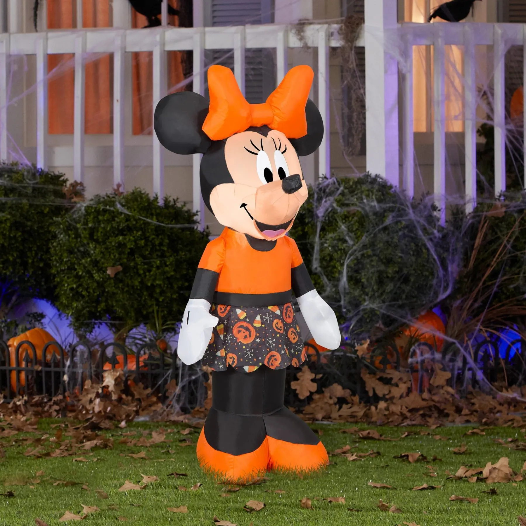 - Includes One Inflatable That Measures 42 Inches Tall And Features Famous Disney Character Minnie Mouse Dressed In A Halloween Themed Skirt And An Orange Shirt, Shoes And Bow