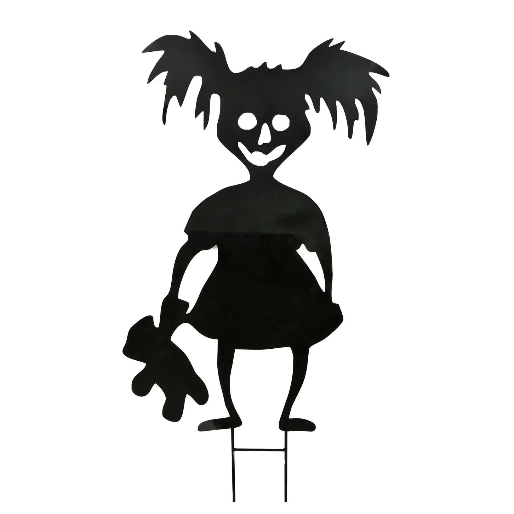Enchant And Entertain Your Family And Friends With National Tree Company’S Lawn Decoration. This Harrowing Halloween Decoration Depicts A Silhouette Of A Creepy Girl With Frizzy, Frightening Hair, Hollow Eyes, A Crooked Smile And Holding A Teddy Bear. Mad