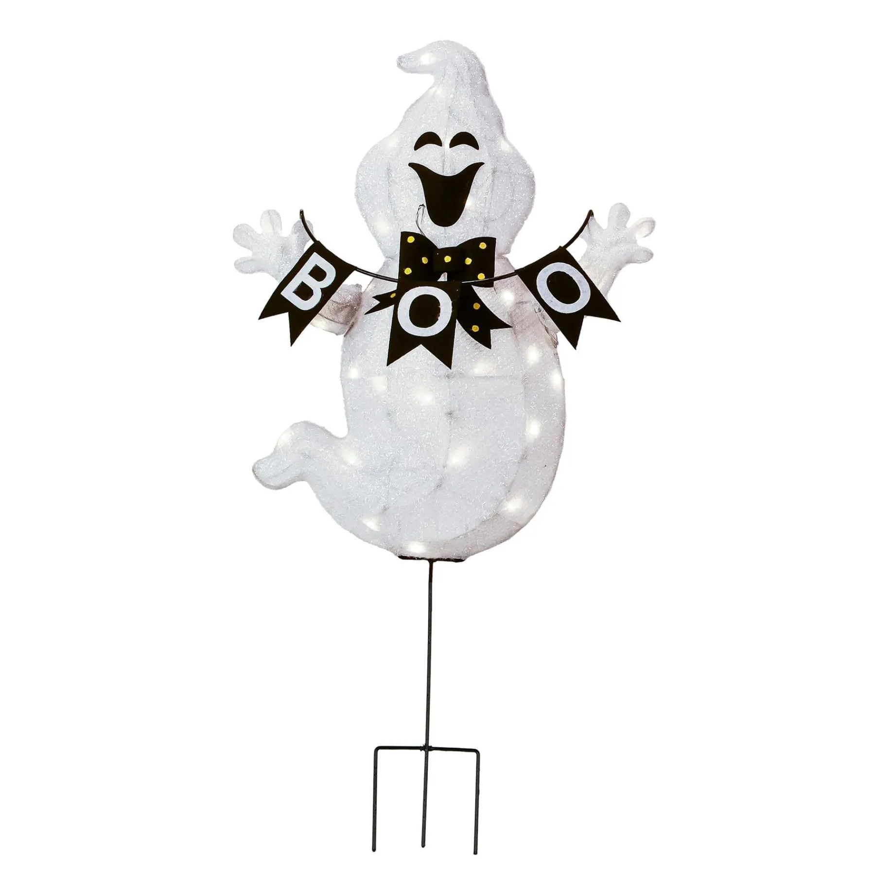 Enchant And Entertain Your Family And Friends With National Tree Company’S Pre Lit Lawn Decoration. The Decoration Depicts A Wide Smiling, Bowtie Wearing Ghost With Arms Outstretched Holding A Banner That Reads €Œboo”. To Power The Lights On The Inside,