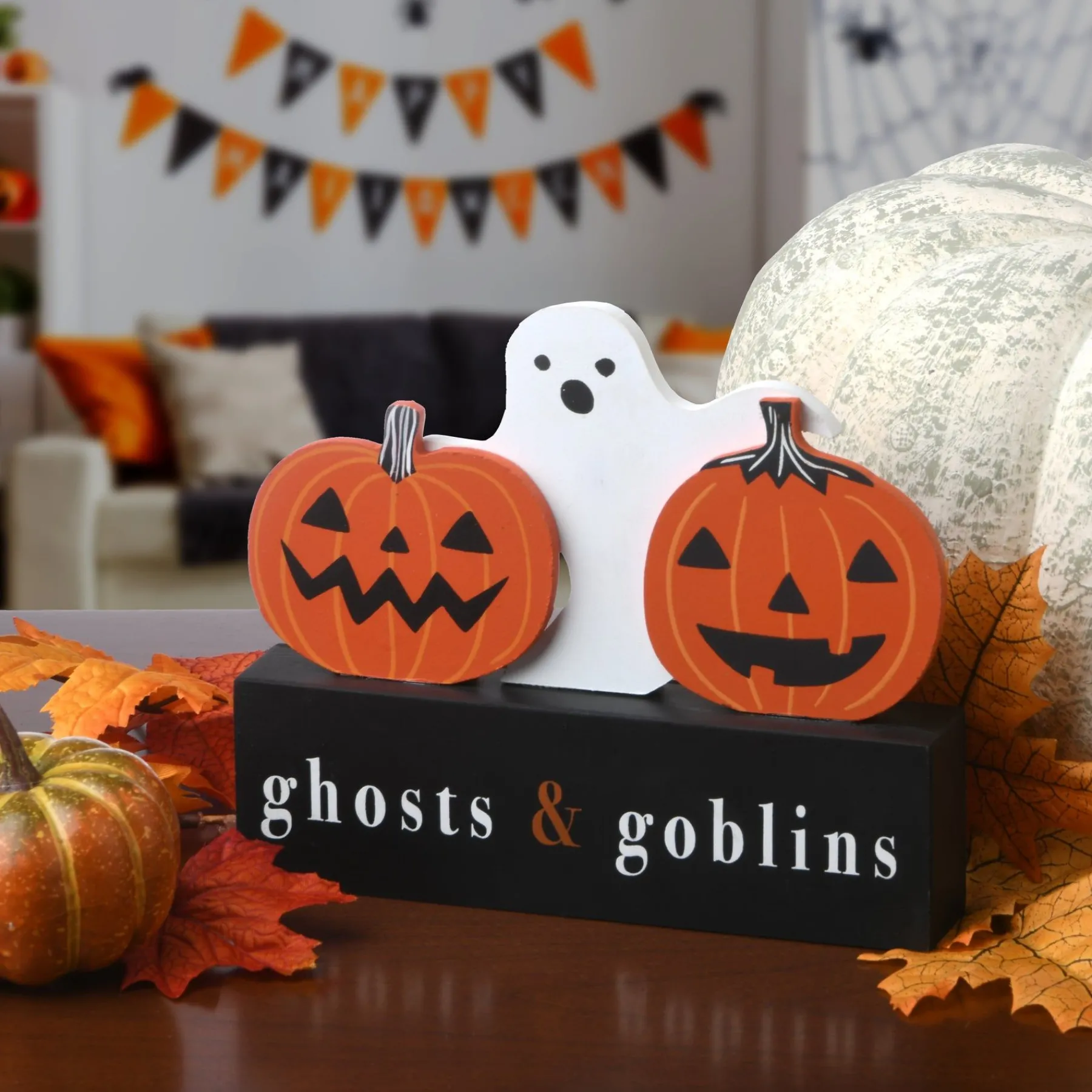 Transform Your Home Into The Scariest House In The Neighborhood With National Tree Company’S Ghosts And Goblins Table Sign Decoration. This 6 Inch Wooden Plaque Features Two Pumpkins, A Ghost And Adorned With The Message “Ghosts & Goblins”. Made With Ligh
