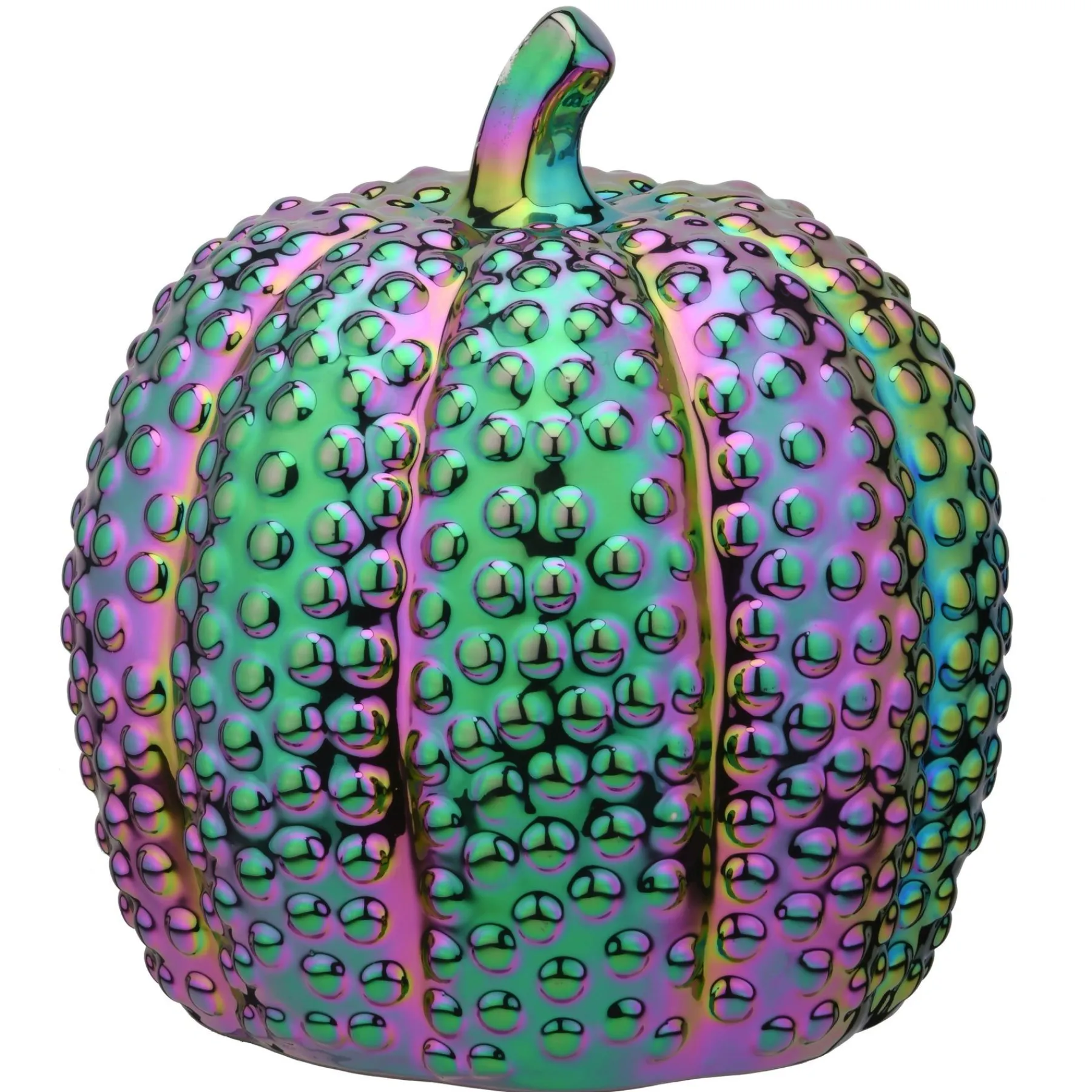 - Halloween Themed Decorative Statue Depicting An Iridescent Pumpkin.