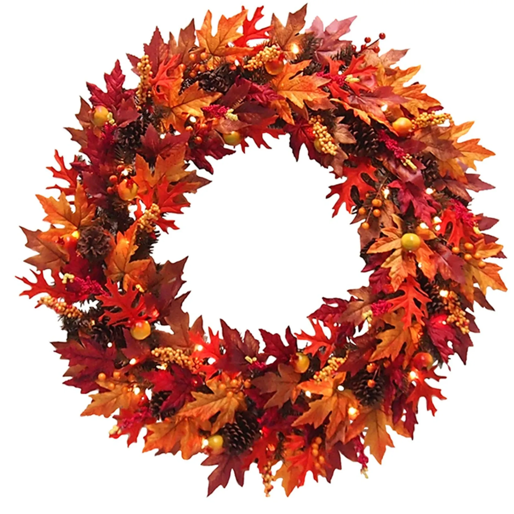 Harvest Wreath-National Tree Company Pre-Lit Artificial Autumn Wreath, Decorated With Gourds, Pinecones, Maple Leaves, Berry Clusters And Lights, Autumn Collection, 36 In