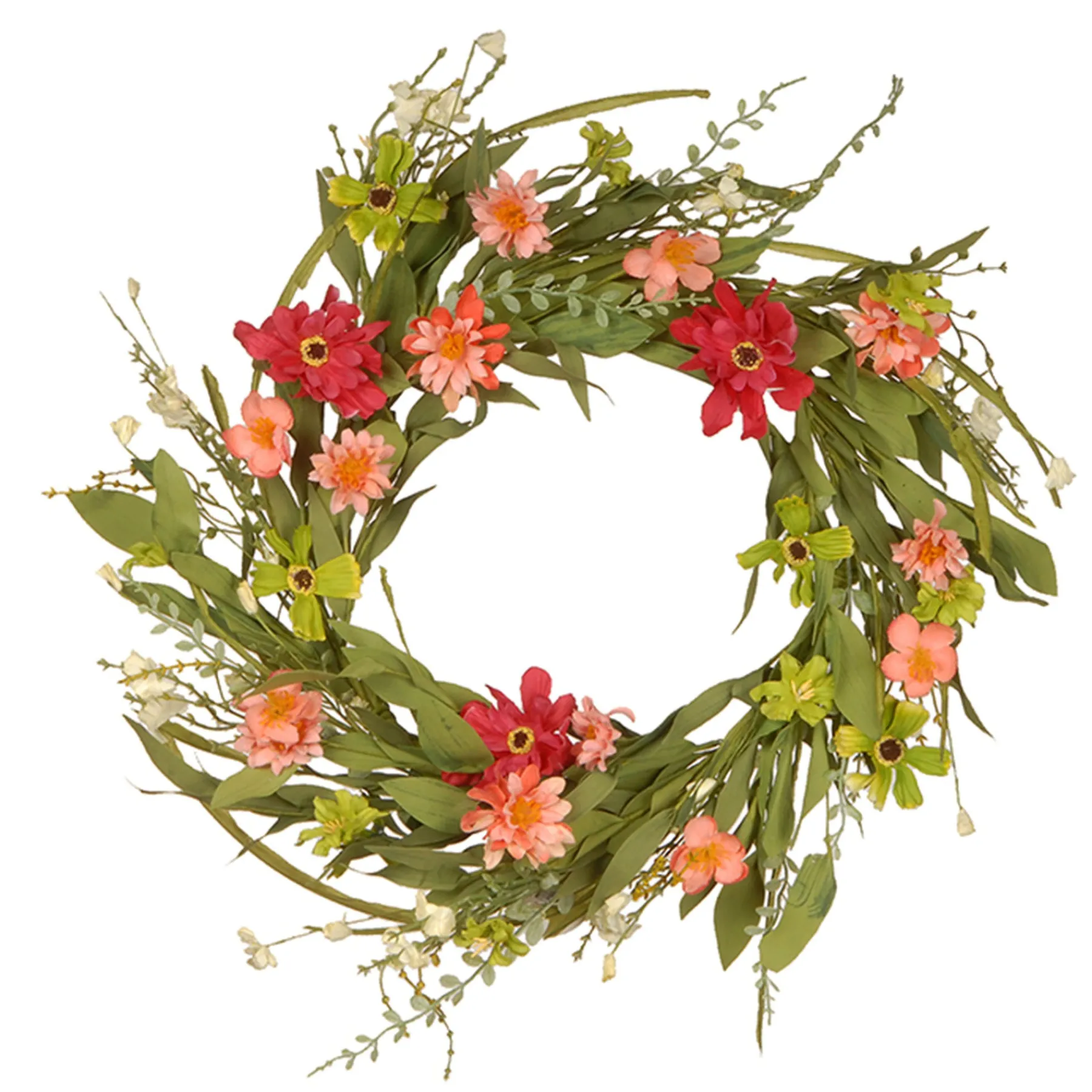 National Tree Company Flower Wreaths^ Artificial Hanging Wreath, Woven Vine Stem Base, Decorated With Red, Green And Pink Wildflower Blooms, Flowing Green Stems, Spring Collection, 22 Inches