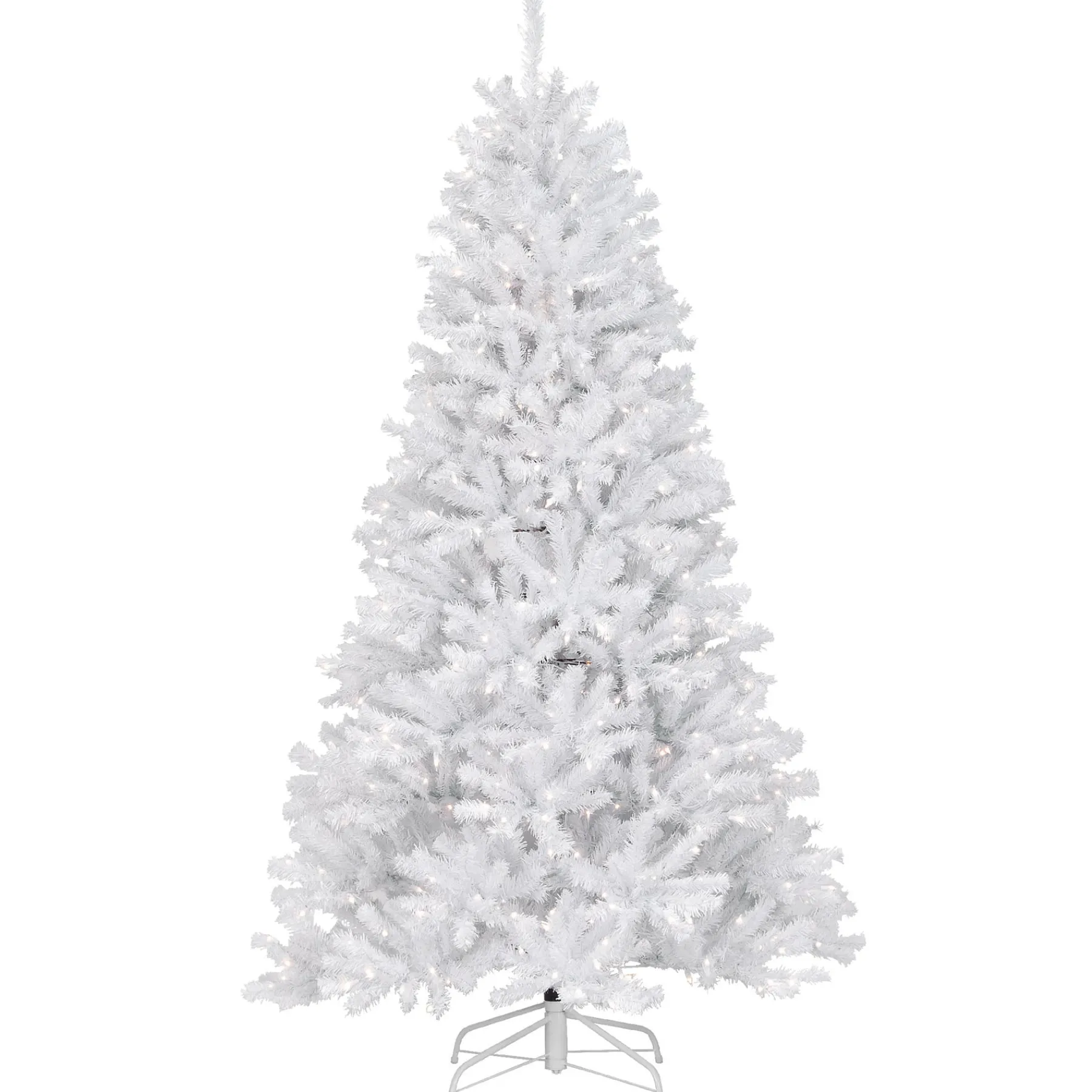 National Tree Company Full^Pre-Lit Artificial Slim Christmas Tree, White, North Valley Spruce, White Lights, Includes Stand, 7.5 Feet