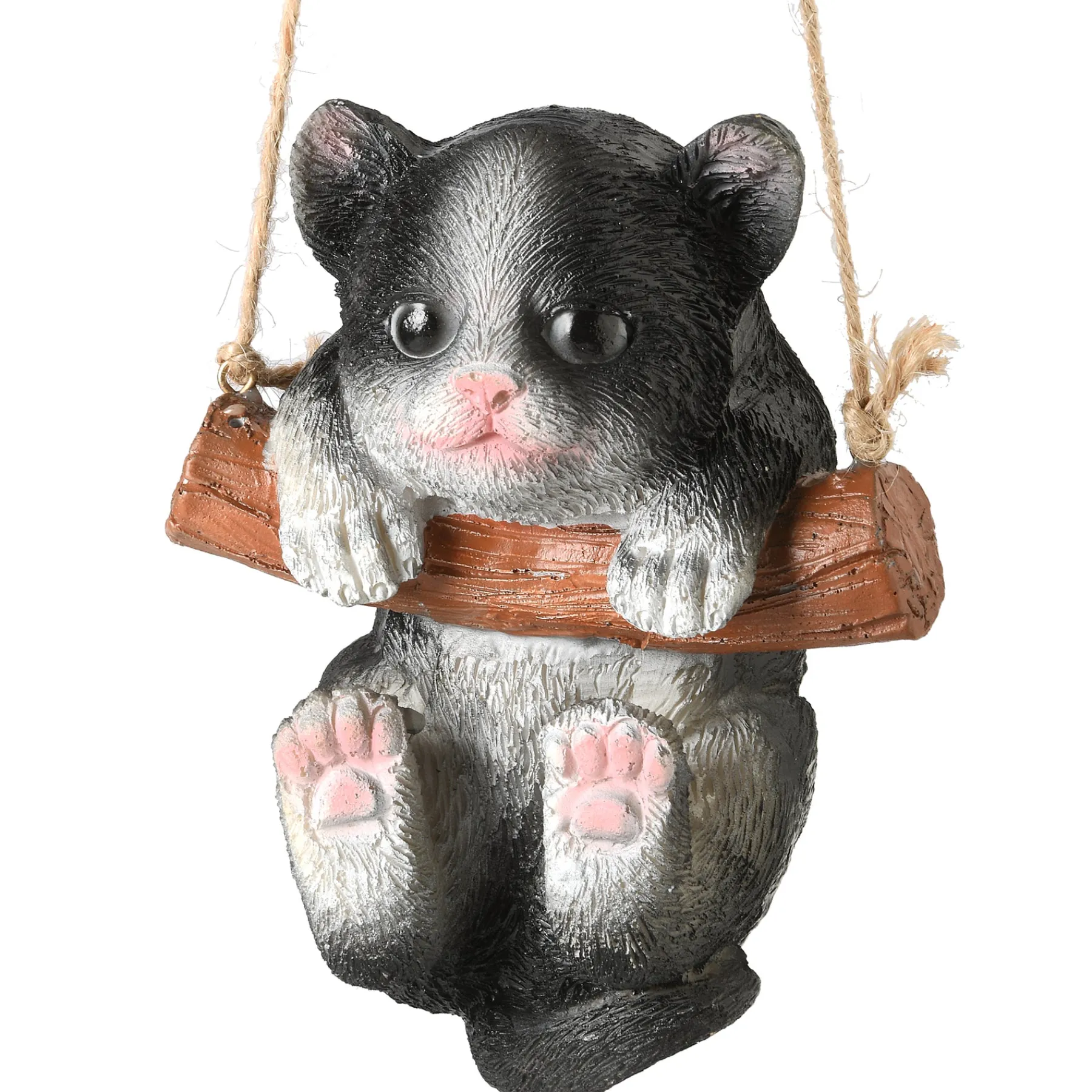 This Cute Kitten Will Swing And Sway When Hung From A Tree Branch, Garden Hook Or Fence Post. Constructed Of Cast Poly Resin Material And Hand-Painted With Delicate Detail, This Decorative Piece Is Sure To Bring A Smile. For Indoor Or Outdoor Use, Hanging String Included.