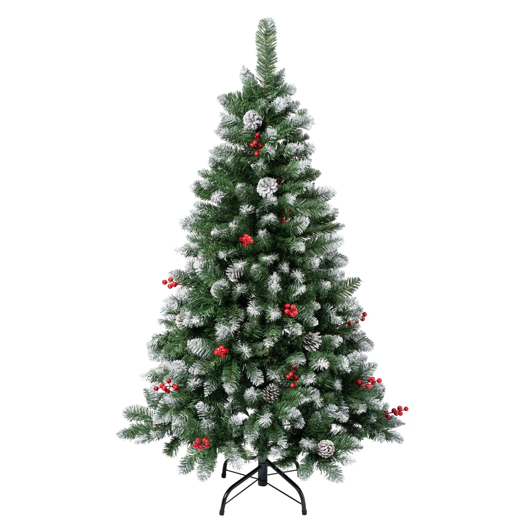 - Crafted With 460 Pvc Tips And Trimmed With 17 Berries And 17 Pinecones. Features Pre-Attached, Hinged Branches That Drop Down For A Simple Set-Up And Fold Back In For Quick And Convenient Storage.
