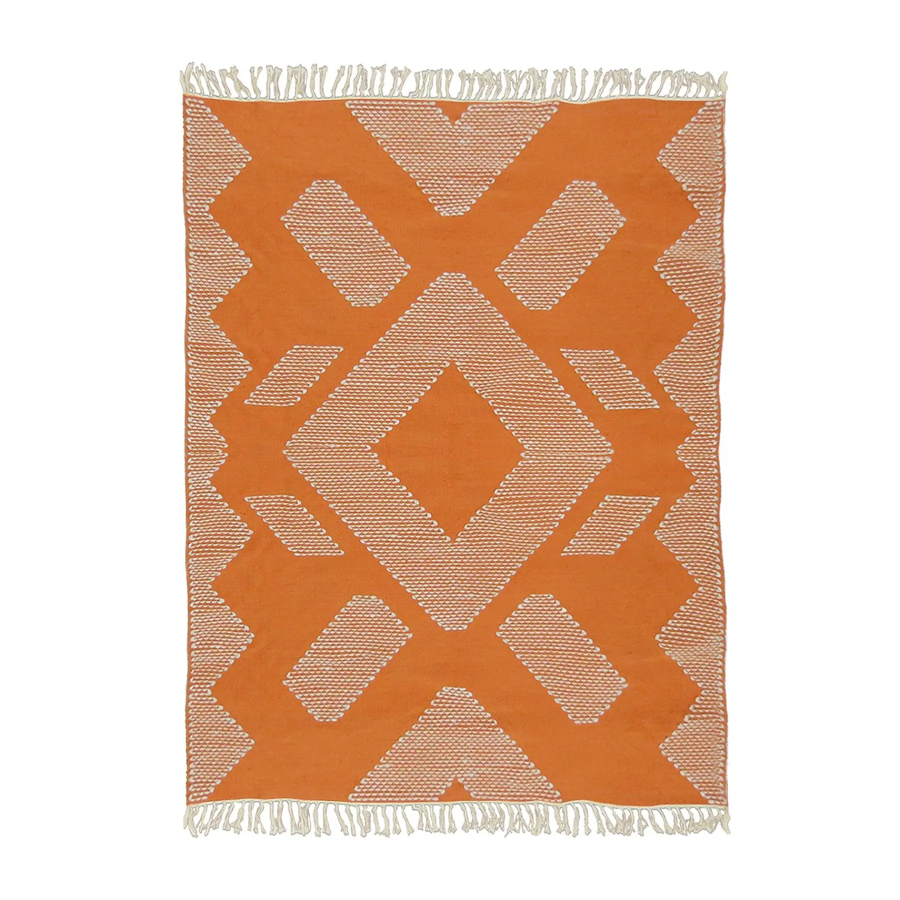 This Attractive Indoor/Outdoor Area Rug Is Constructed Of 100% Polyester That Is Stain And Fade Resistant And Designed To Endure Outdoor Environments. Handwoven In A Bright Papaya Color And Featuring A Braided Geometric Pattern, This Floor Covering Will Provide A Relaxed Texture While At The Same Time Protecting The Floor Beneath. Durable And Suitable For High-Traffic Areas, This Rug Will Easily Dress Up Interior Or Exterior Spaces, Perfect For Porch, Patio, Family Room Or Foyer.