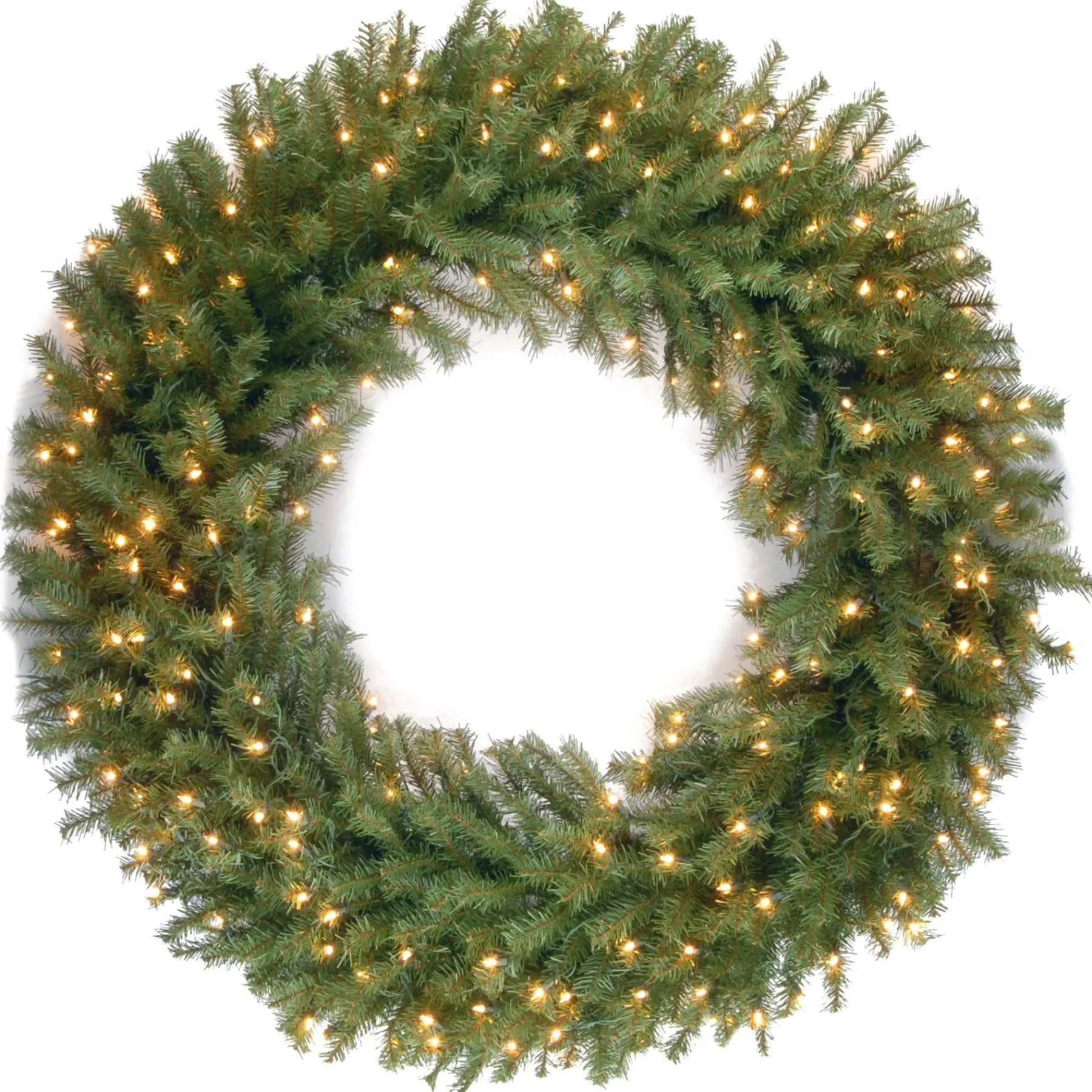 - Designed With A Norwood Fir Branch Base, This Pre-Lit Artificial Christmas Wreath Is 48 Inches Wide.