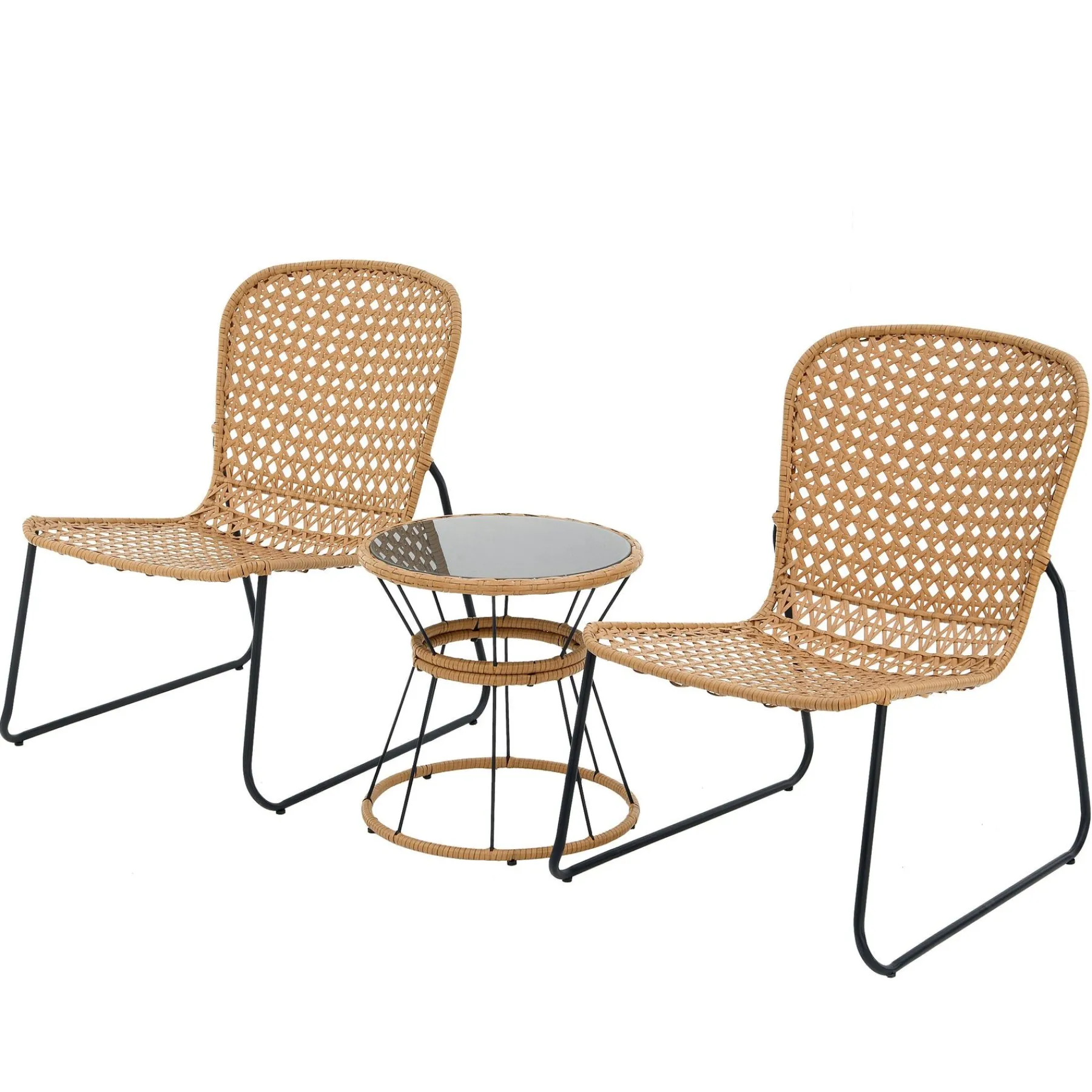 This Contemporary Styled Indoor/Outdoor Conversation Set Features A Strong, Yet Lightweight Synthetic Pe Braided Wicker Material In An Appealing Tan Color. Powder-Coated Steel Frame Constructions Is Designed To Withstand Harsh Outdoor Elements. The Matching Wicker Accented Table Includes A 5 Mm Tempered Glass Top. Strong Yet Lightweight, These Pieces Are Effortless To Transport Or Rearrange And Just As Easy To Maintain And Care For. Assembly Required.