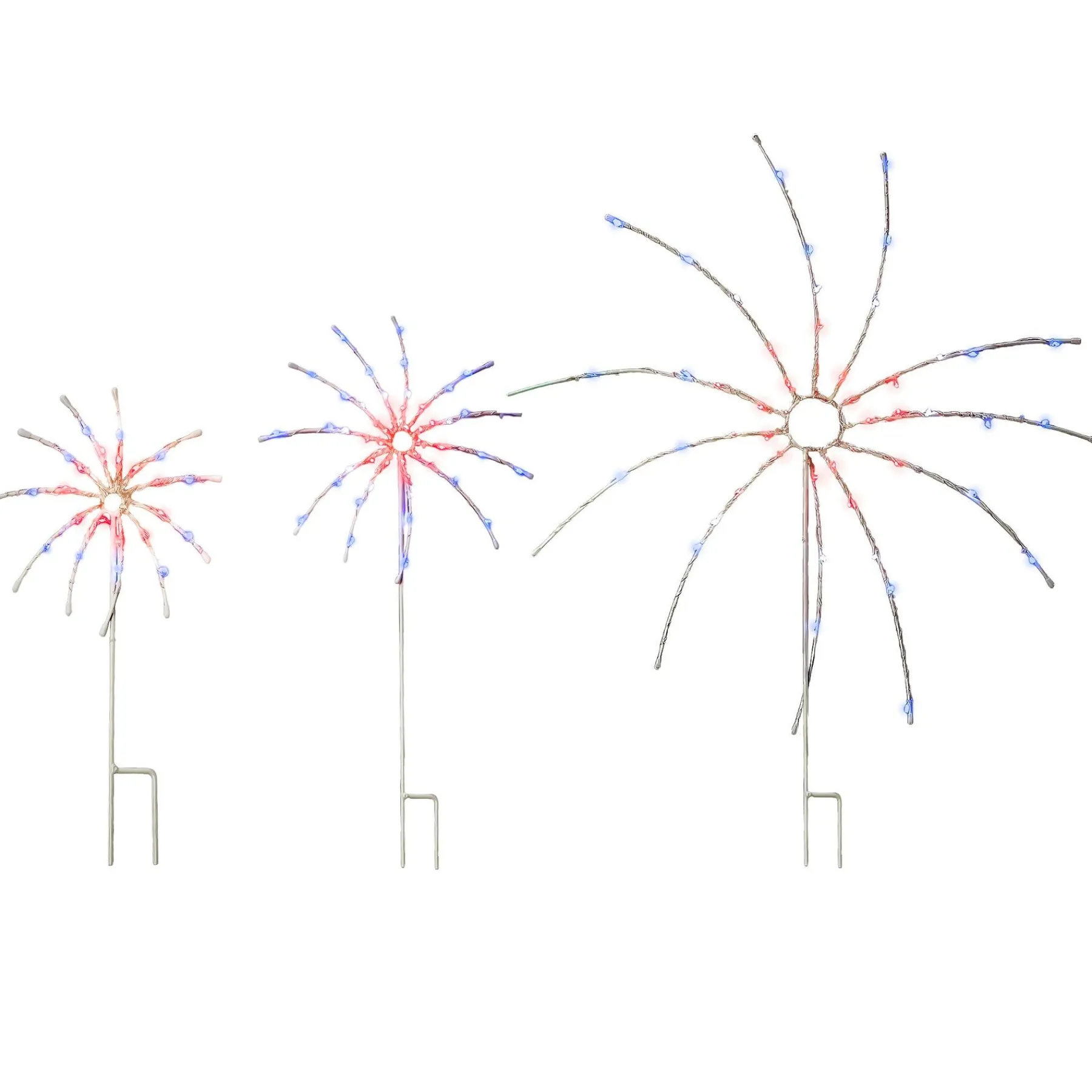 16″, 24″ & 36″ Patriotic Light Up Fireworks Lawn Décor With 165 Red, White And Blue, Copper Wire Led Lights-Ul, Outdoor, Pack 1