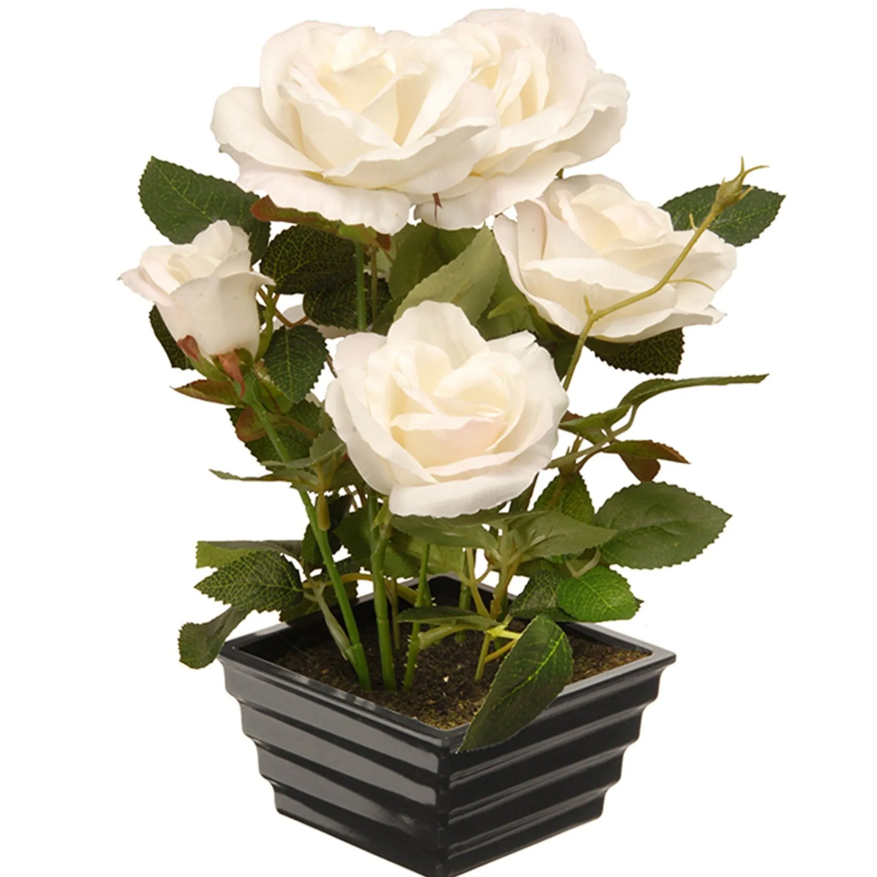 - Includes One Artificial Potted Flowers That Measures 11 Inches In Height, Includes A Square, Black Base And Is Potted With Gorgeous, White Rose Blooms And An Artificial Soil Base.